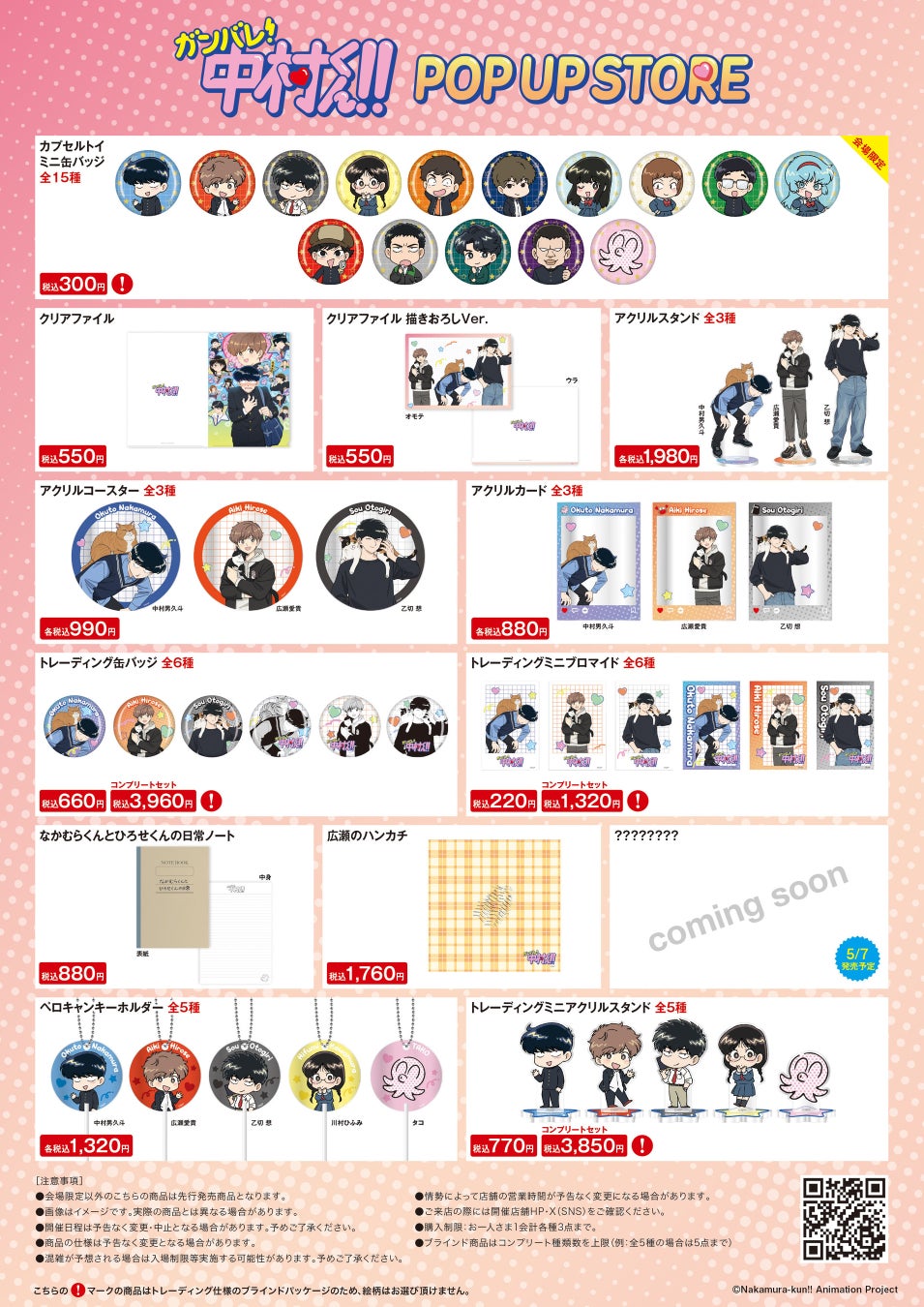 TVアニメーション「ガンバレ!中村くん!!」POP UP STORE 商品一覧