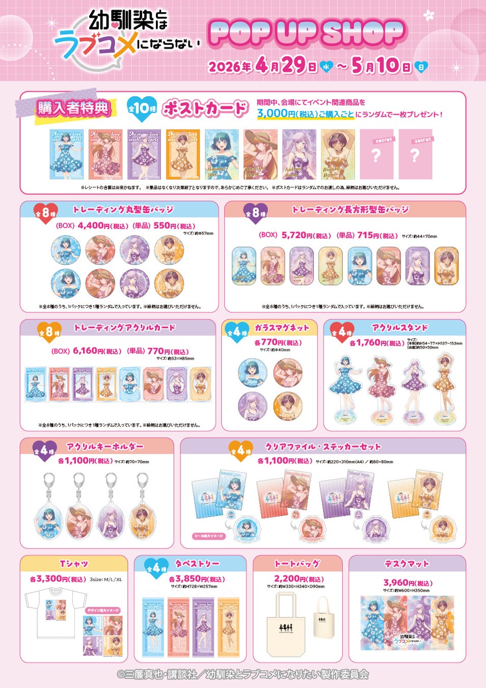 株式会社パルック(本社 : 東京都台東区、代表取締役: 山口 茂昭)は、講談社の人気コミックを原作としたTVアニメ『幼馴染とはラブコメにならない』の POP UP SHOP をボークス秋葉原ホビー天国2 1F 特設コーナーにて期間限定開催いたします。