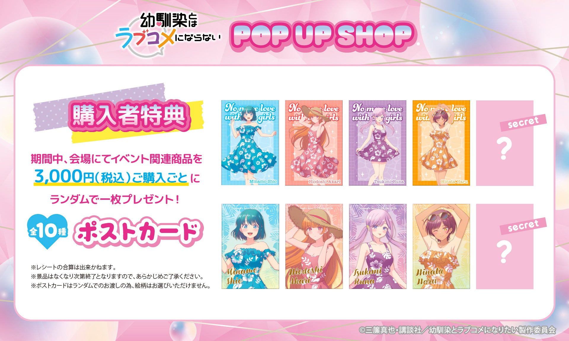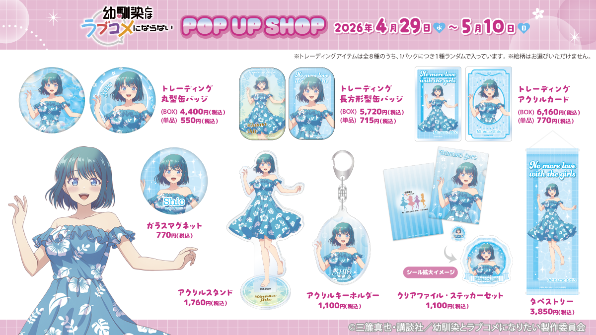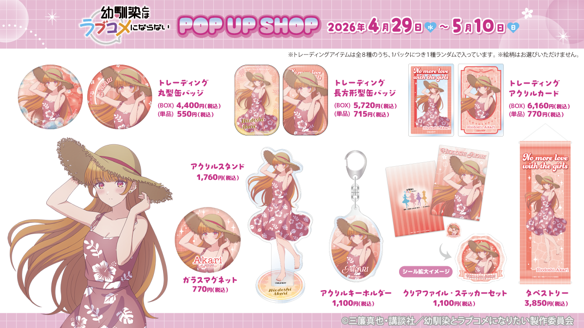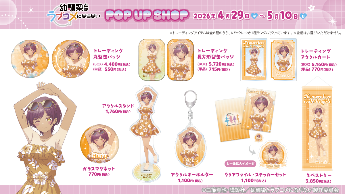 株式会社パルック(本社 : 東京都台東区、代表取締役: 山口 茂昭)は、講談社の人気コミックを原作としたTVアニメ『幼馴染とはラブコメにならない』の POP UP SHOP をボークス秋葉原ホビー天国2 1F 特設コーナーにて期間限定開催いたします。