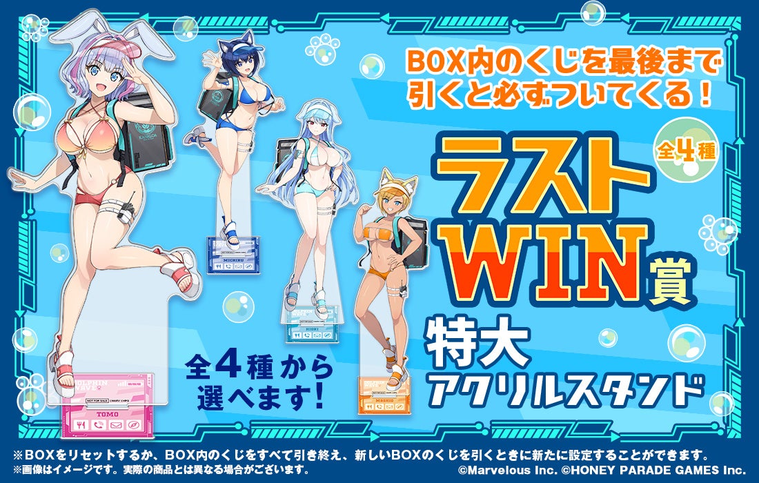また、ラストWIN賞では通常賞品よりもさらに大きい、約30cmの特大アクリルスタンドがラインナップ。