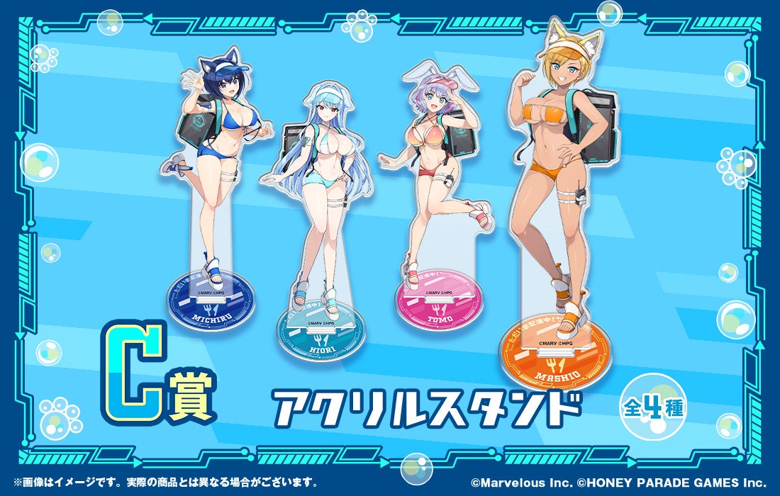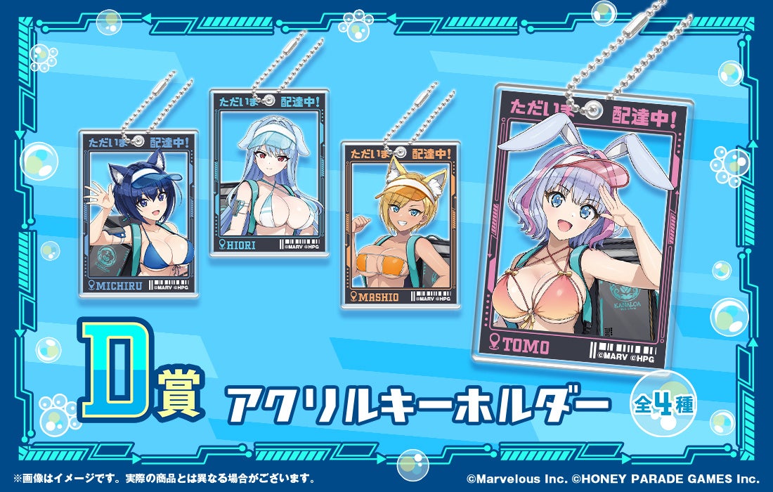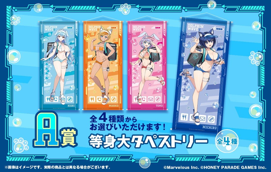 HONEY∞PARADE GAMESが運営する「ドルフィンウェーブ」より、WEBくじ第2弾として、みちる・氷織・麻汐・トモの4人が「アニマル耳×配達員」の描き下ろしイラストで登場します!