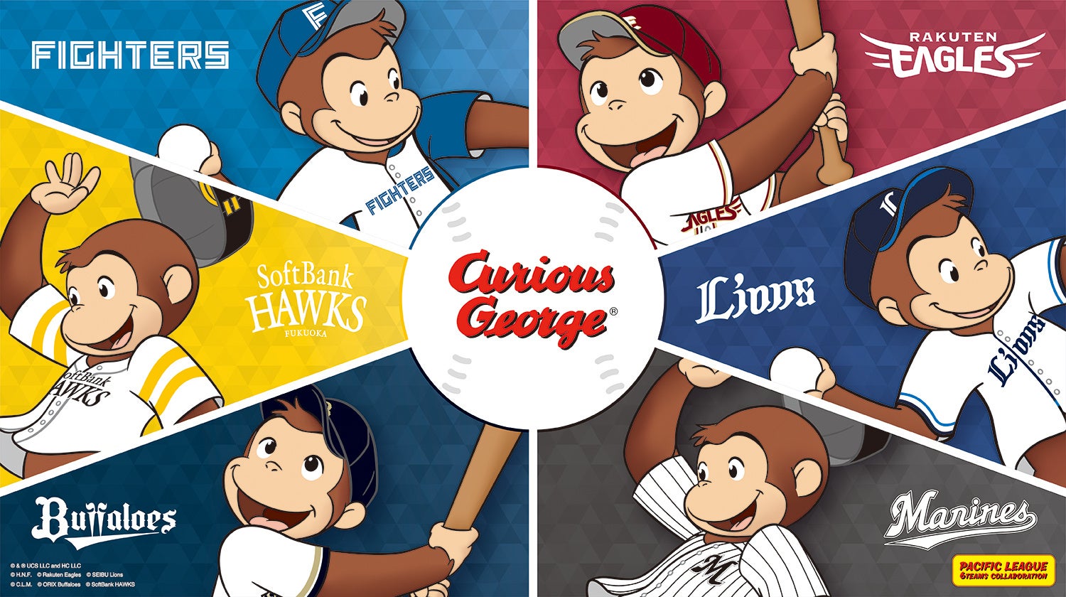 「おさるのジョージ」は、世代を超えて愛され続け、2026年で誕生85周年を迎える人気キャラクターです。パ・リーグ6球団とのコラボレーションは、2024年、2025年に続き今年で3回目の実施となります。これまで大きな反響をいただいたことを受け、2026年も「おさるのジョージ」が各球団のユニフォームやキャップを着用し、野球を楽しむイラストを用いた新作コラボグッズを展開いたします。アニバーサリーイヤーにふさわしい、特別感あふれるラインナップにぜひご期待ください。また、コラボグッズの発売を記念して、パ・リーグ5球場へジョージが来場し、撮影会などを実施予定です。球場で見せるジョージのかわいらしい姿にも、ぜひご注目ください。