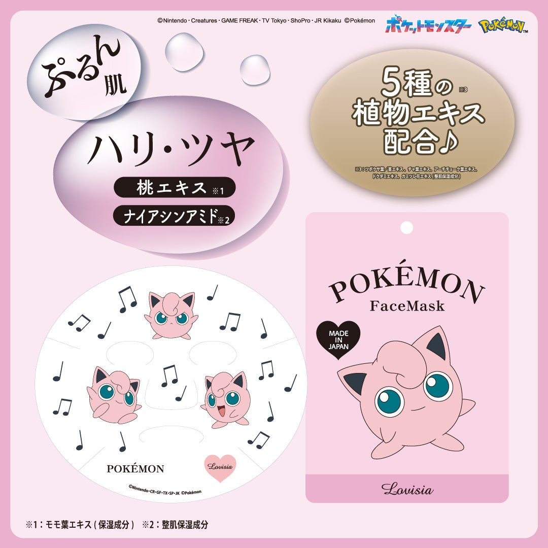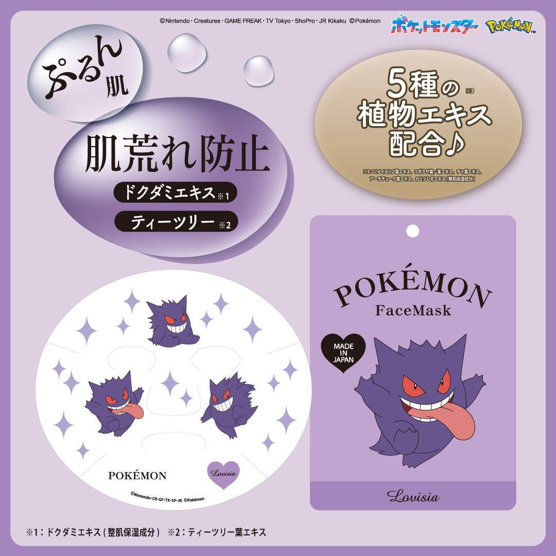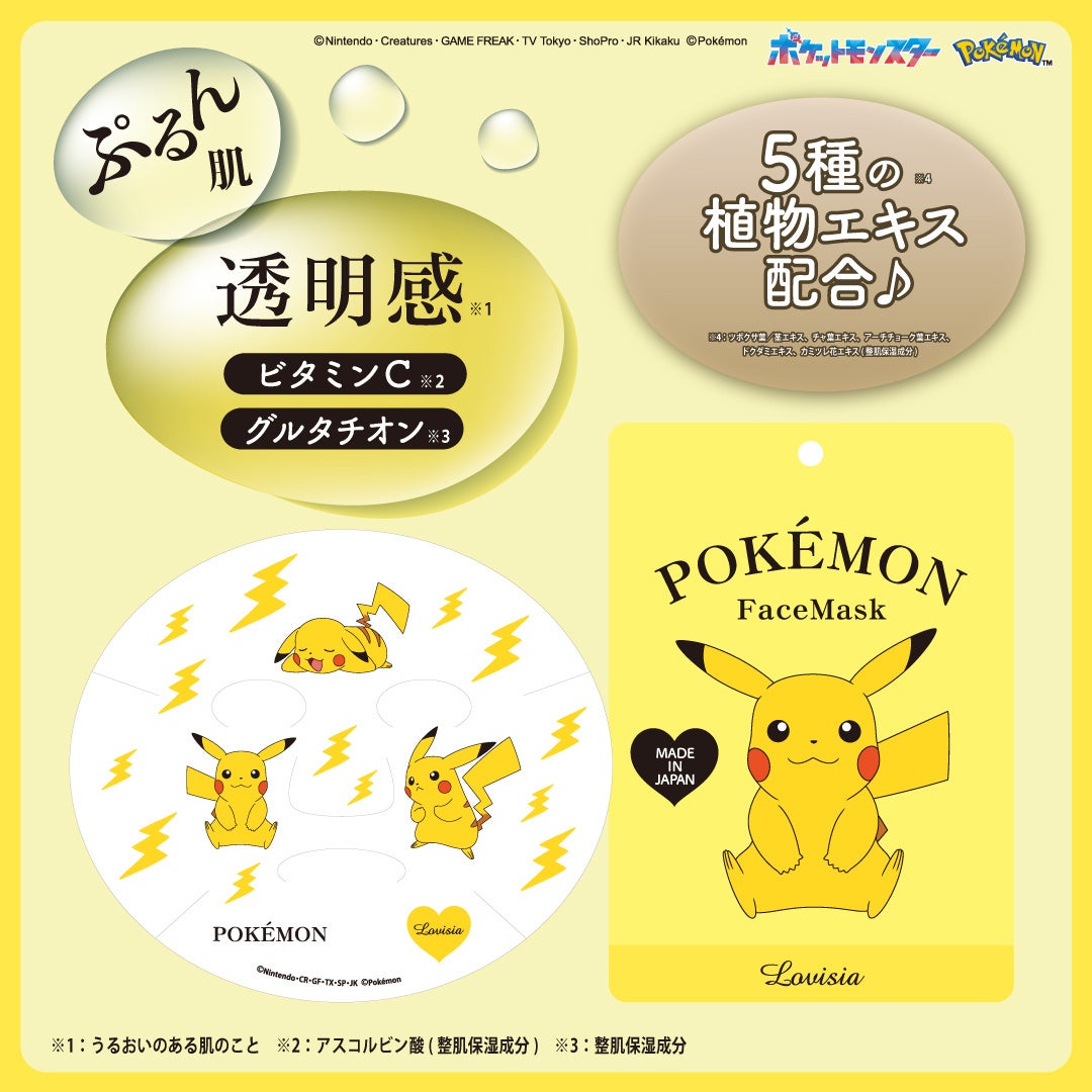 「Lovisiaポケモンフェイスマスク」は、全国のバラエティショップおよびLovisiaオンラインショップで発売中です。