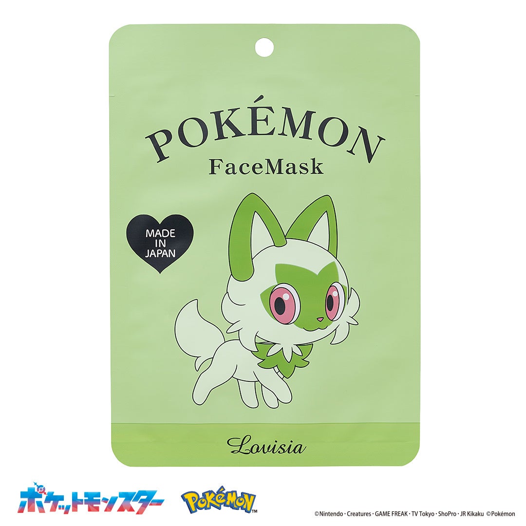Lovisiaでも人気の高いアイテムであるフェイスマスクに、ポケモンの新デザインが登場しました。今回発売になる「Lovisiaポケモンフェイスマスク」は、シックなカラーのパッケージと、ポケモンたちに元気をもらえそうな楽しいデザインのシートパックがキュートな、プレゼントにもぴったりなアイテムです。ピカチュウ、プリン、ゲンガー、イーブイ、ポッチャマ、ニャオハの6匹のポケモンたちをラインアップし、5種の植物成分※1を配合しています。