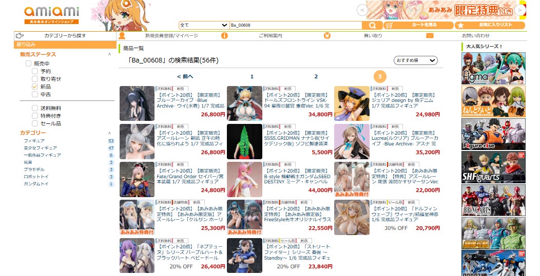 ・対象商品購入時に付与される「あみあみ」ポイントが20倍になる『【1週間限定】対象商品ポイント20倍キャンペーン』を実施いたします。