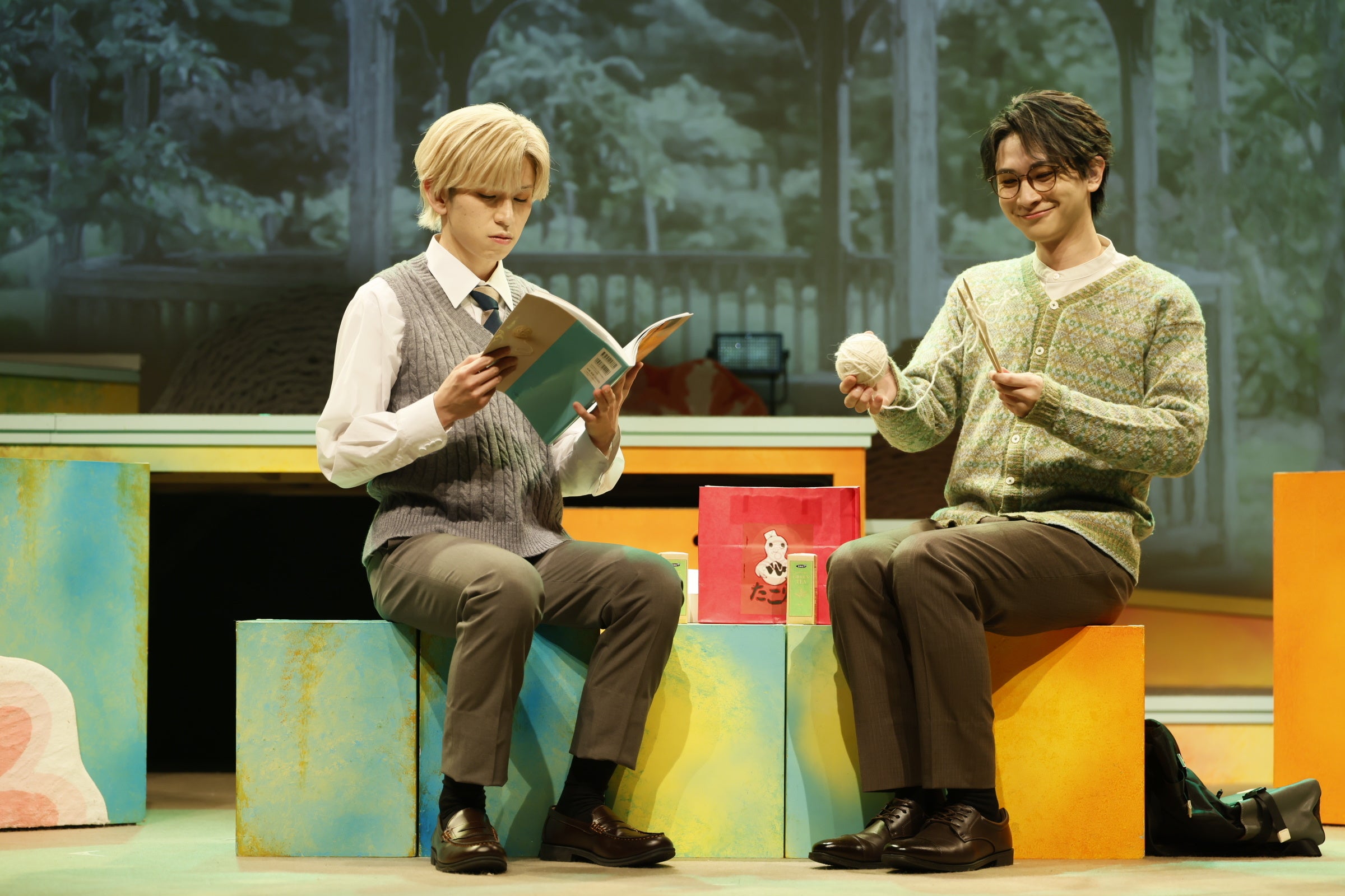 そんな最悪の出会いから始まった健斗と類の関係性が、編み物を通して変わっていく様子を原作コミックス同様に丁寧に描いていたのが印象的。これが舞台初主演となる森崎は健斗の内面からこぼれる朗らかさを全身で表現。慣れない細かな作業に力が入りガニ股になってしまう姿も微笑ましく、元運動部らしい不器用さが健斗というキャラクターの愛嬌を生み出していた。もともと編み物とは無縁だった彼が、類と出会い、手芸部先輩の天馬や織武蓮(演:藤田浩太朗)に導かれ、自分の新しい好きに出会っていく姿を森崎が等身大に演じきった。