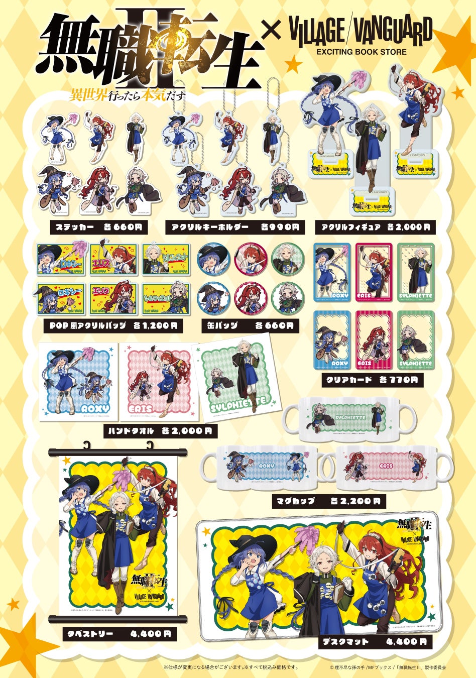 TVアニメ「無職転生Ⅱ ~異世界行ったら本気だす~」×ヴィレッジヴァンガードのコラボグッズをヴィレッジヴァンガードオンラインストアにて受注開始いたします。