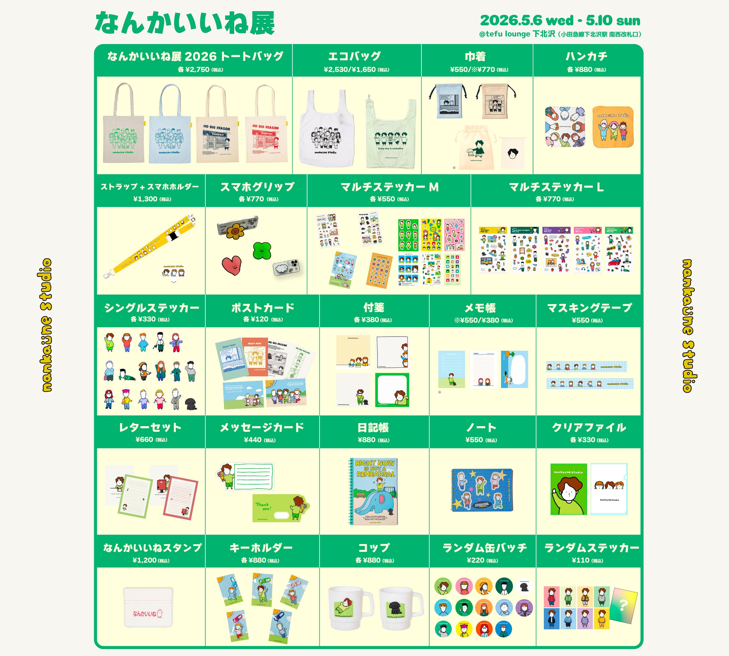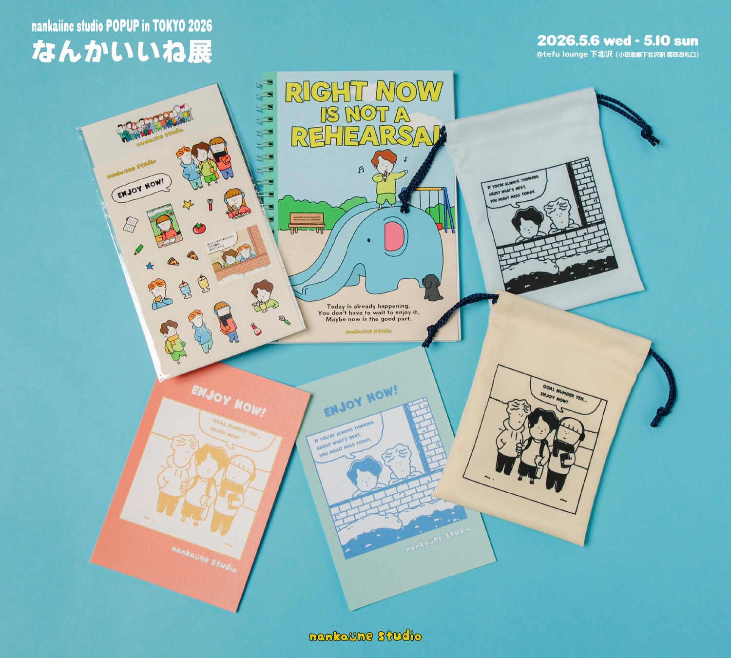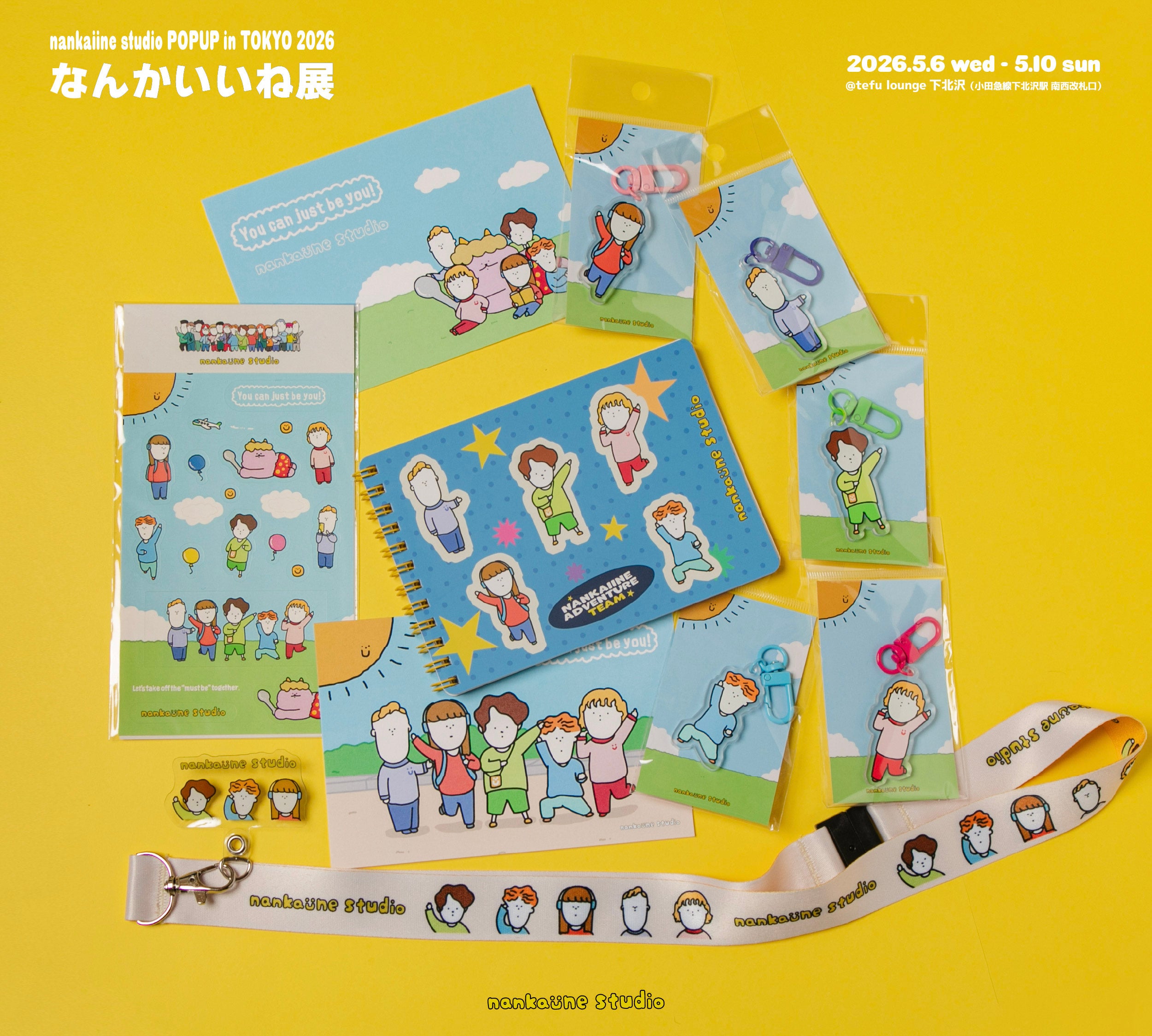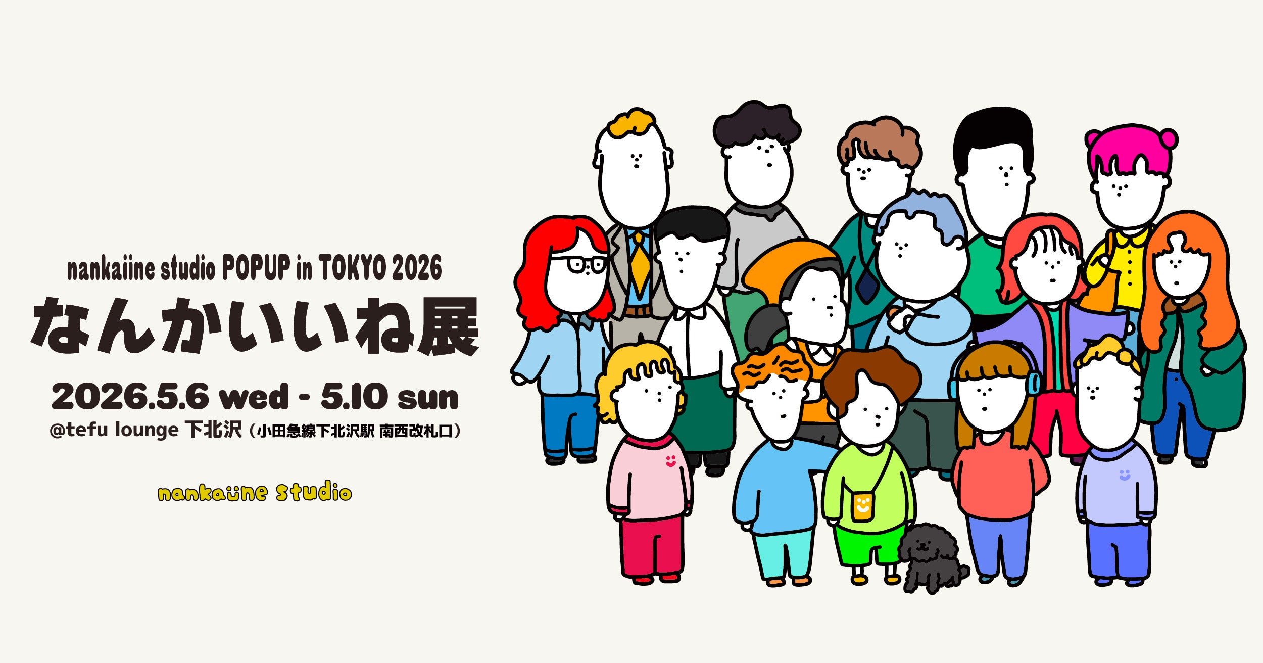 「まぁ、なんかいいねでいいんじゃない?」をコンセプトにした、ゆるくてシンプルなキャラクターたちのストーリーを発信するnankaiine studio(ナンカイイネ スタジオ)は、2026年5月6日(水)〜55月10日(日)の5日間、tefu lounge 下北沢にて、「なんかいいね展 -nankaiine studio POPUP STORE in TOKYO 2026」期間限定ポップアップを開催いたします。