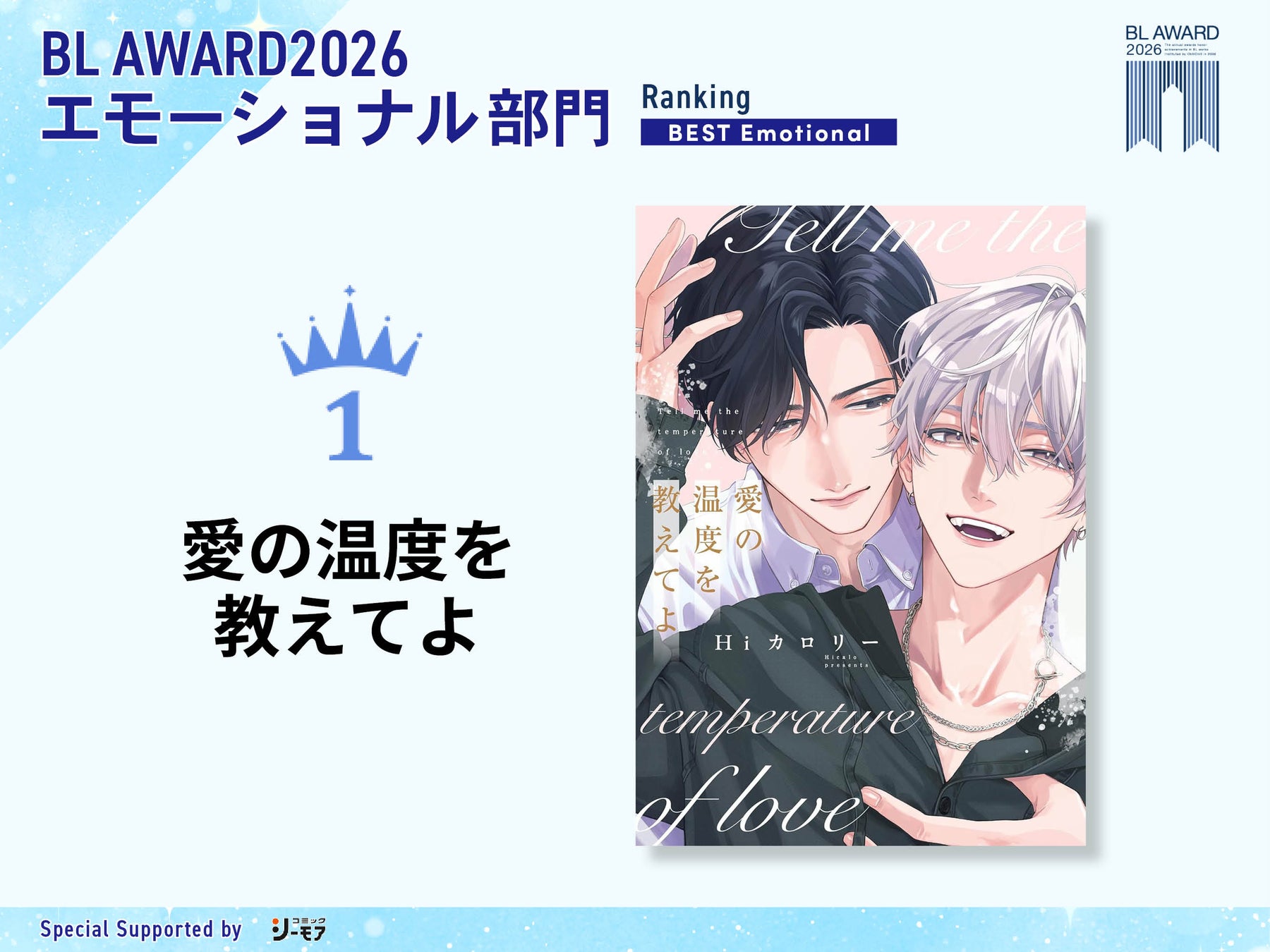 2026年4月17日(金)、当社が運営するBL情報サイト「ちるちる」(https://www.chil-chil.net/)にて、毎年のBL業界の動向を占うBL総選挙「BLアワード2026」の結果を発表いたしました。