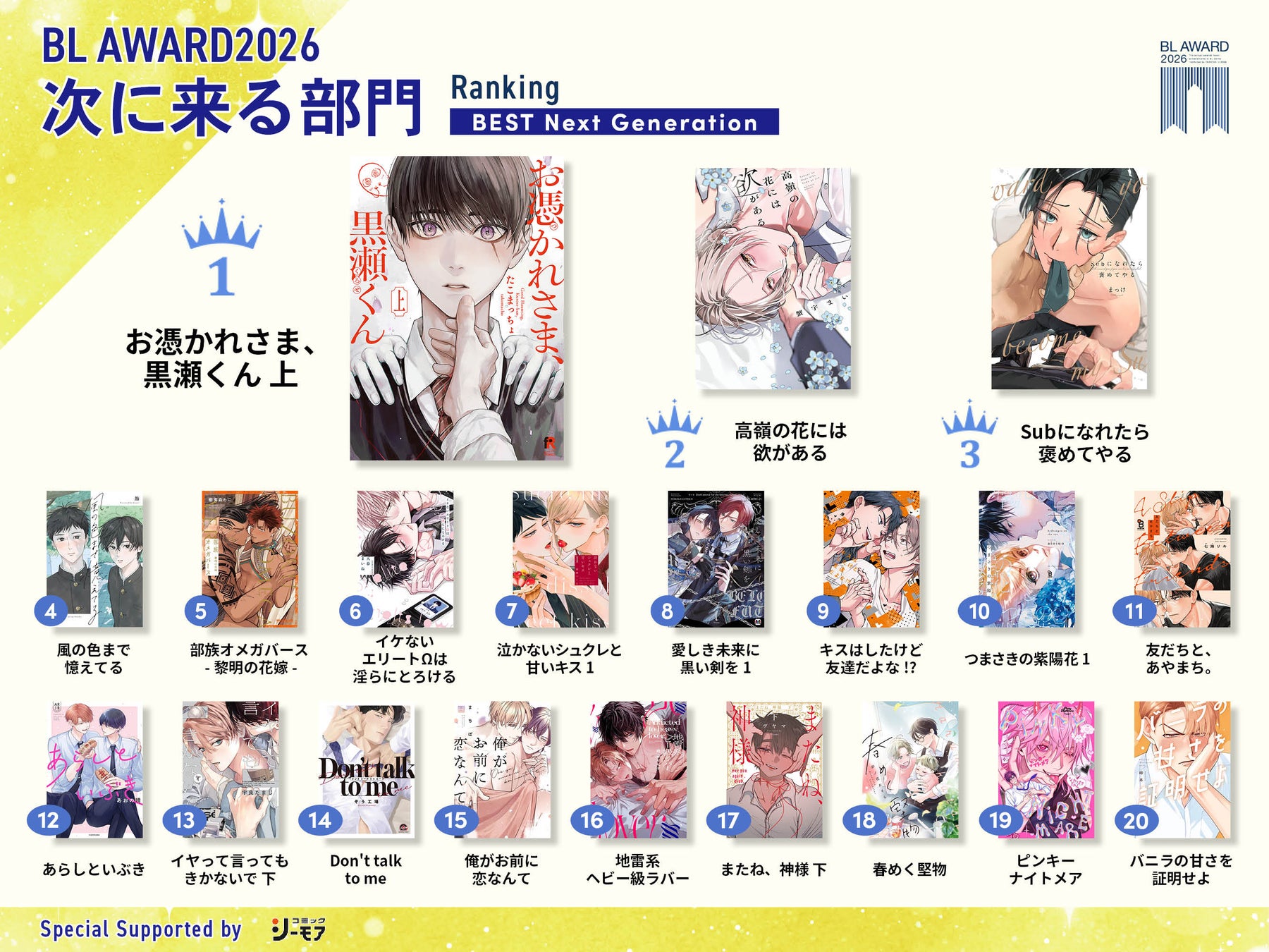 2025年に発売・公開された作品のなかから、ファン自らが推す人気商業BL作品10部門のランキングを特設サイトで一挙に公開。