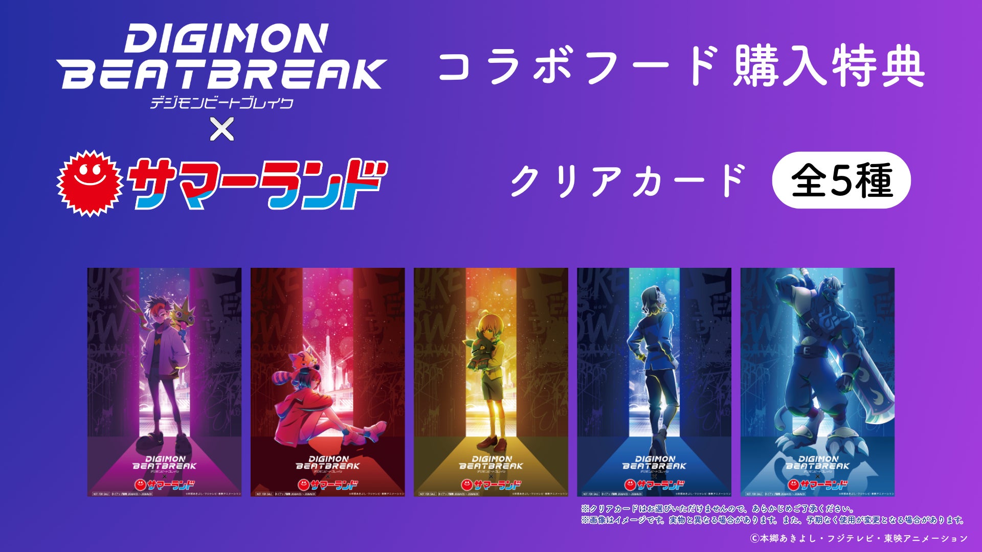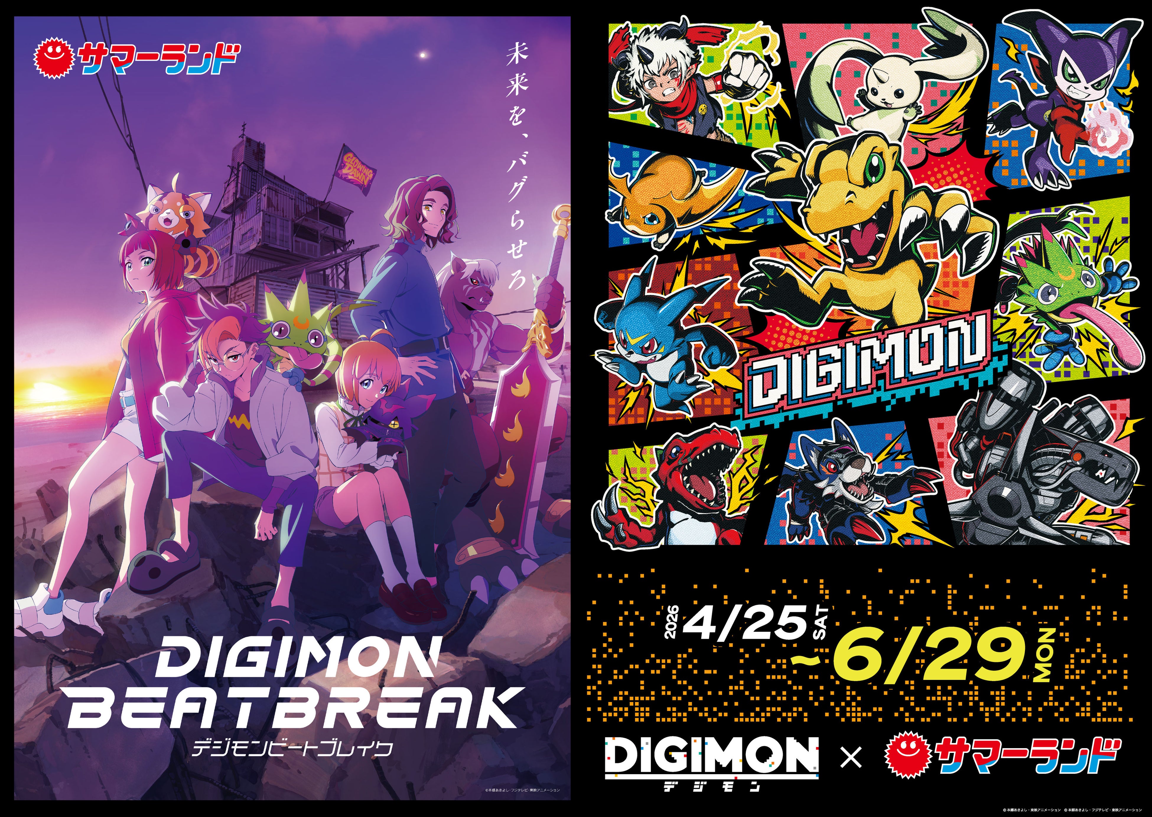 東映アニメーション株式会社(本社:東京都中野区、代表取締役社長:高木勝裕)は、TVアニメ「DIGIMON BEATBREAK(デジモンビートブレイク)」および人気デジモンが集結した「オールデジモン」と、東京サマーランドのコラボイベント「さまらん×デジモン2026プレサマー」の開催が決定いたしましたことをお知らせいたします。本イベントでは、オリジナルノベルティ付きのコラボフードの販売や、デジモンの楽曲に合わせてスプラッシュが楽しめるスペシャルコラボ「ビーチスプラッシュ」、迫力満点の園内装飾など盛りだくさんの内容でお届けいたします。