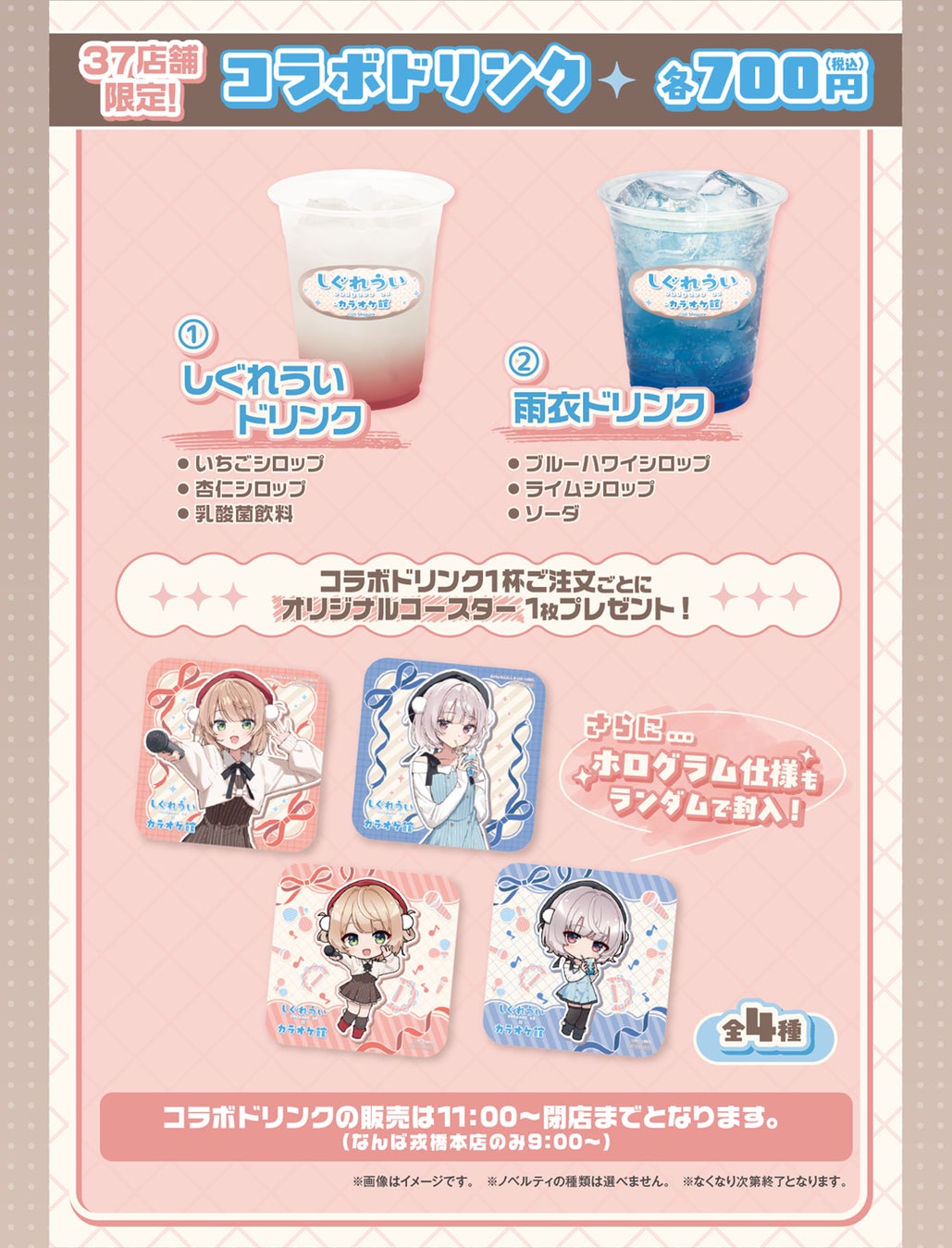 コラボドリンク1杯ご注文ごとにオリジナルコースター(全4種)をランダムで1枚プレゼント