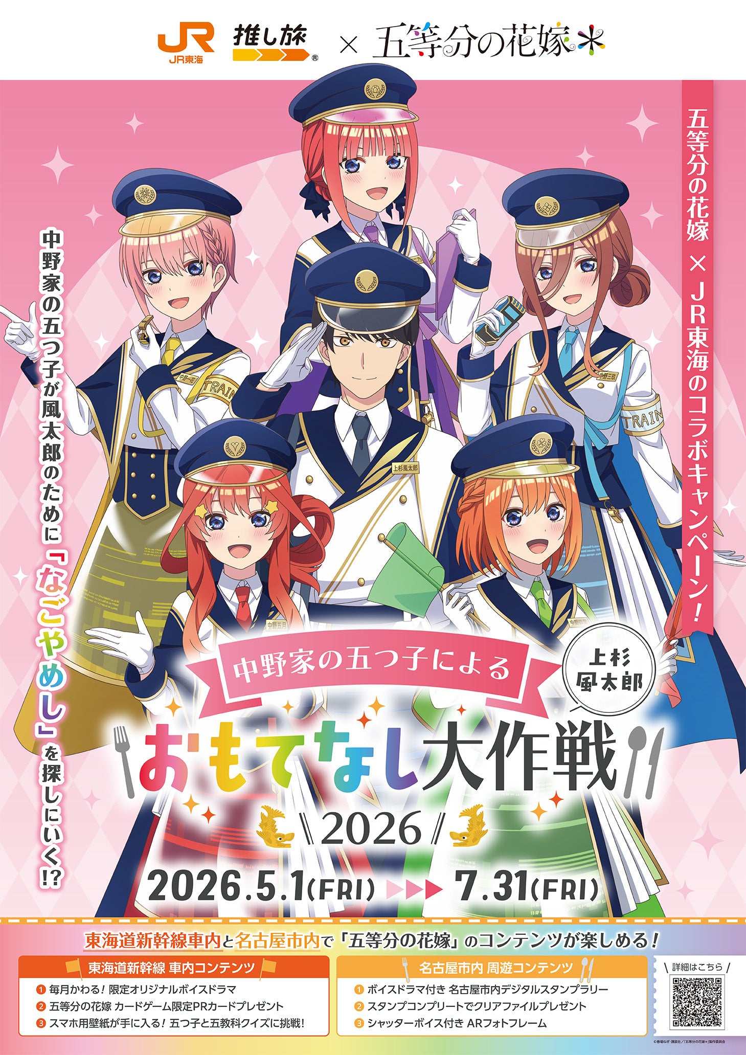 株式会社MAGES. (東京都港区 代表取締役社長:浅田誠)は、TVスペシャルアニメ「五等分の花嫁*」と、JR東海「推し旅」とのコラボをテーマにしたコスチュームを身に纏う五つ子と風太郎の描き下ろしイラストを使用したオリジナルグッズを、期間限定のPOP UP STOREで2026年5月1日より販売開始することをお知らせいたします。