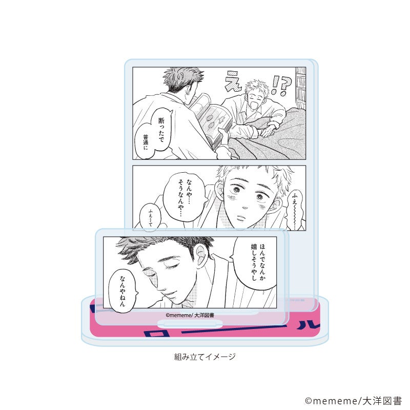 大きさおよそ12cm×12cm以内(組み立て前)のアクリルスタンドプレート。原作コマが描かれたパーツを、作品タイトルがデザインされた台座に差し込んで完成させる、組み立てタイプのアイテムです!