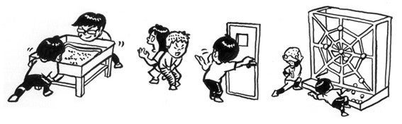 パンが焦げてしまったら、黒こげで絵を描いてしまおう。トイレが使用中なら、ノックして話かけてみよう。蜘蛛の巣に引っ掛かったら遊んでしまおう。ピンチに遭遇したら遊びで乗り越えてしまいましょう。