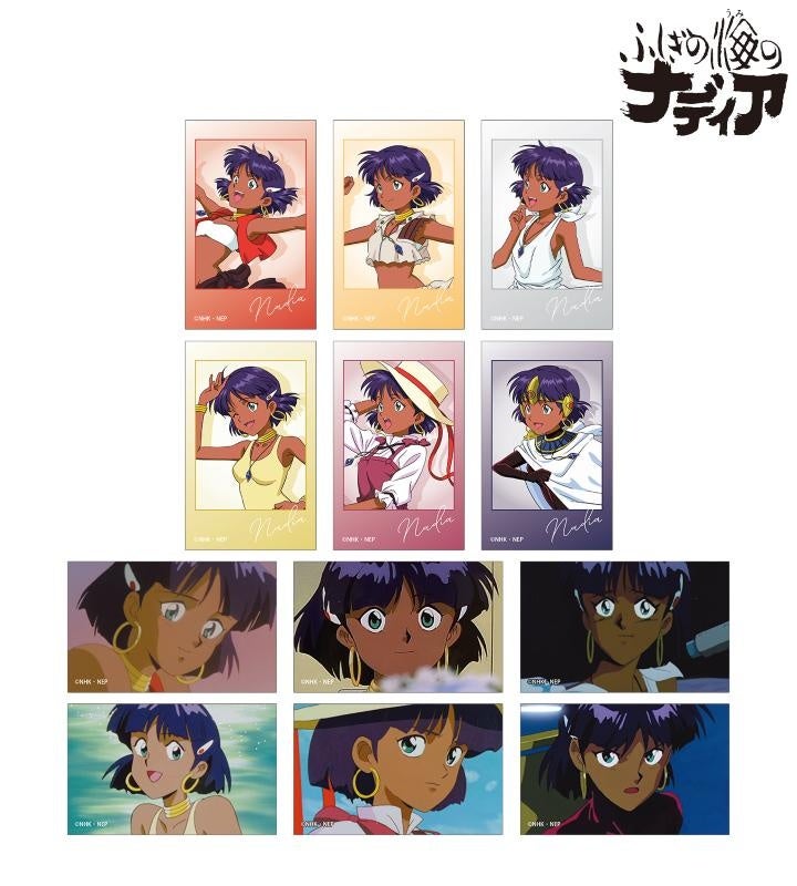 ナディア、ジャン、キング、マリー、ネモ、エレクトラ、ガーゴイル、ネオ皇帝、グランディスの印象的なシーンをクリアカードに仕上げました。