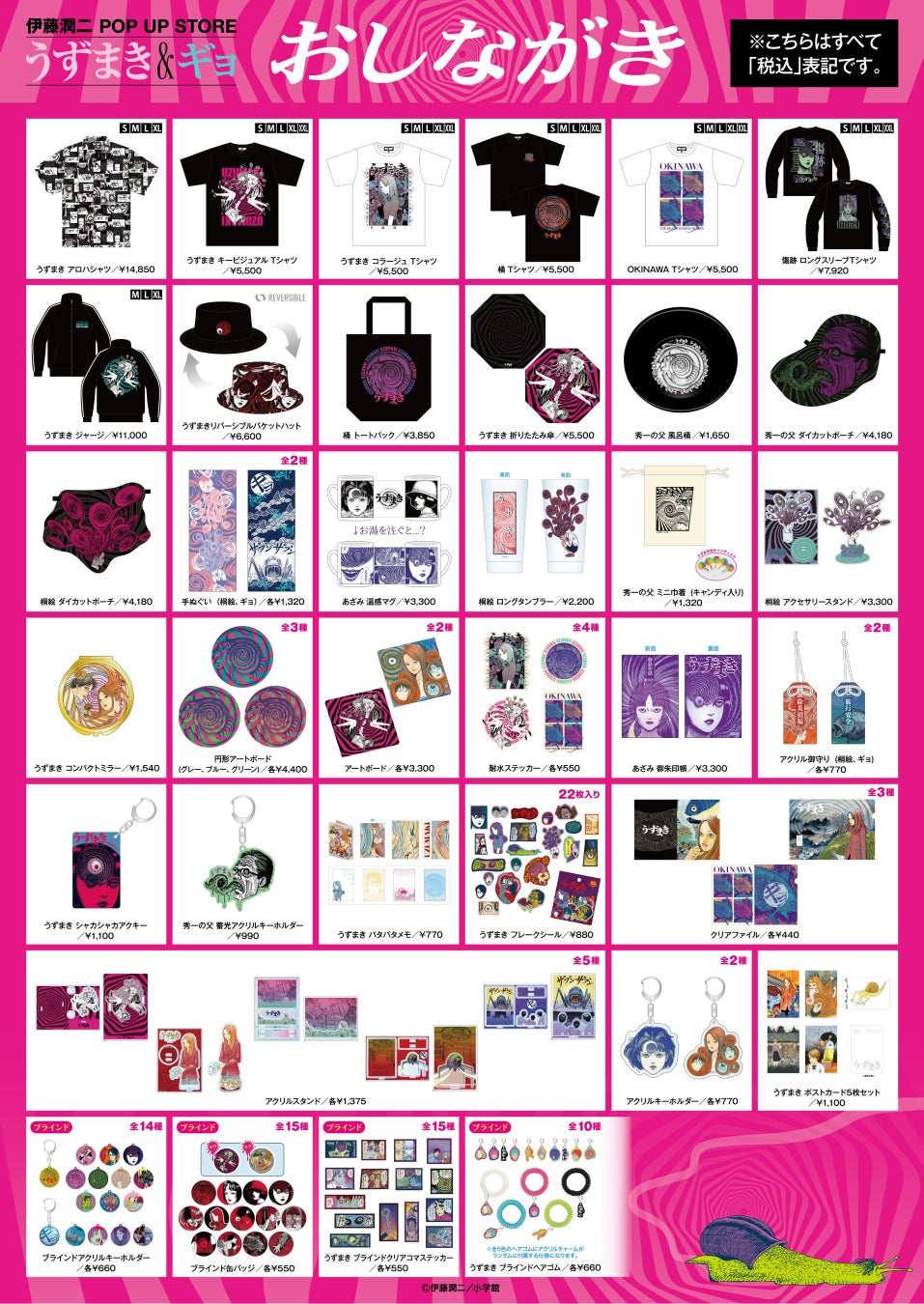 日本ホラー漫画界のトップランナーとして世界で活躍する伊藤潤二先生。恐怖と美、そして狂気が入り混じる伊藤潤二ワールドの中でも、渦巻く狂気に吸い込まれる傑作『うずまき』と、鼻を突く異臭とともに迫りくる深海の侵略者『ギョ』がついにポップアップストアに!