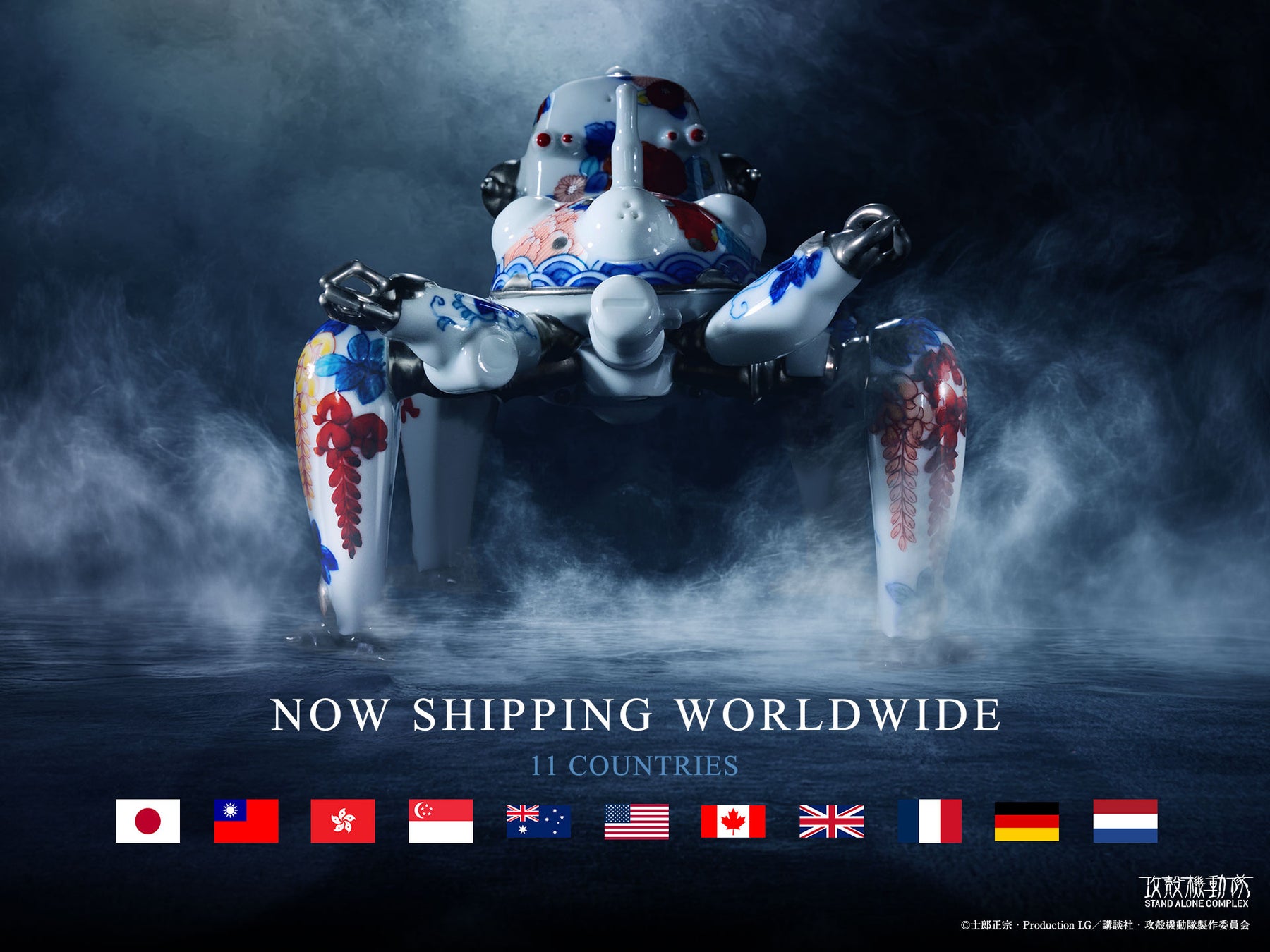 伝統工芸の持つ美しさと、アニメ・ゲームのような現代の価値を融合するグローバルIP磁器ブランド「YOYOYO™」は、2026年1月30日(金)から4月5日(日)までTOKYO NODEで開催された『攻殻機動隊展Ghost and the Shell』会場にて先行受注を行っておりました攻殻機動隊「タチコマ鍋島焼」について、展覧会の閉幕をもって先行販売分が完売となりましたことをご報告いたします。実際に会場へ足を運び、作品を直接ご覧いただいた皆様、そして先行受注にてご購入いただいた皆様に、チーム・職人一同心より深く御礼申し上げます。
