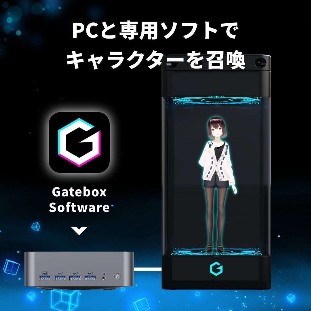 余っているPCやミニPCにGatebox公式専用ソフトをDLして「Gatebox専用機」として活用すれば、キャラクターが常に横に居てくれる新生活が始まります。
