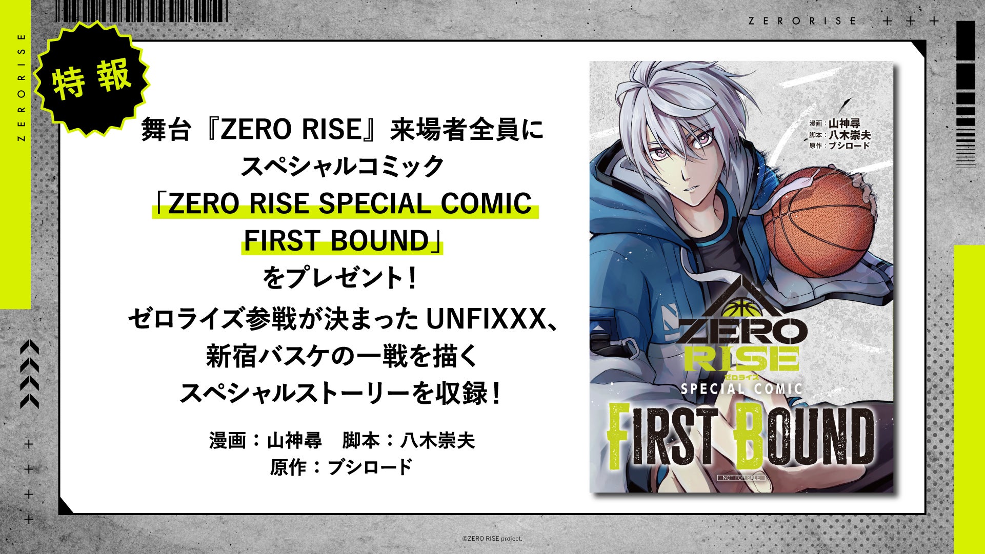 また、新宿バスケの一戦を描くスペシャルコミック「ZERO RISE SPECIAL COMIC FIRST BOUND」も来場者全員にプレゼントいたします。