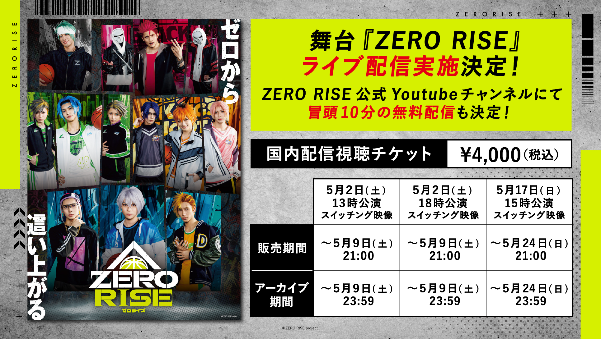 さらに、冒頭10分はZERO RISE公式YouTubeチャンネルにて無料配信を行います。