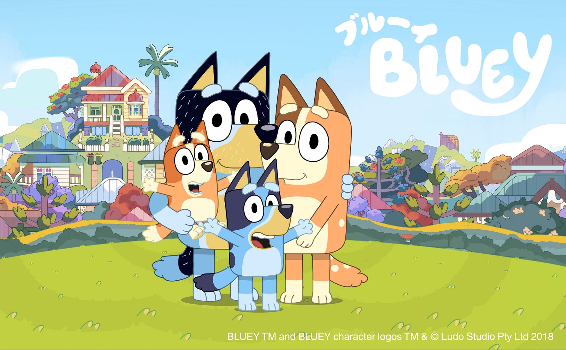 主人公のブルーイは、6歳のオーストラリアン・キャトル・ドッグ(通称ブルー・ヒーラー)の女の子。創造力豊かで好奇心いっぱいのブルーイを中心に、パパ、ママ、4歳の妹ビンゴとの暮らしの中のちょっとした喜びや、子どもたちが遊びを通じて成長する姿を描いたアニメーションです。たくさん笑えて、たまにほろっとする1話完結型のストーリーは、未就学児を中心とした幅広い世代の子どもたちに大人気。また子どもとのかかわり方のヒントがたくさん詰まっていることから、子育て中のママ・パパの心も広くつかんでいます。