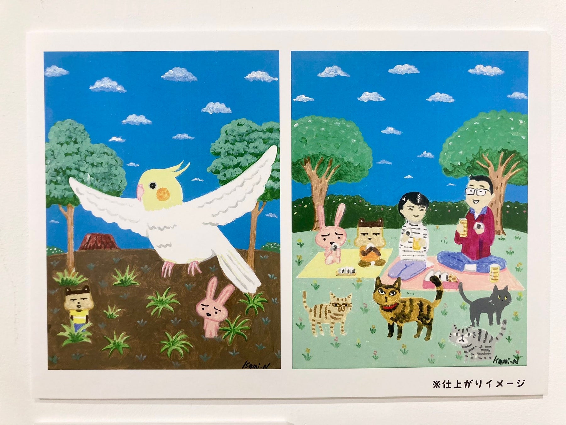 中川先生が「あなたのおうちのどうぶつ」をキャンバスにアクリル画で描いてくださるスペシャルな企画を開催します。ご希望の方は、会場にある応募フォームからお申込みください。会期終了後に抽選を行い当落のご連絡をします。お送りいただいた写真や教えていただいた性格を参考に、中川先生が1枚1枚描いてくださいます。詳細は会場の案内パネルをご覧ください。