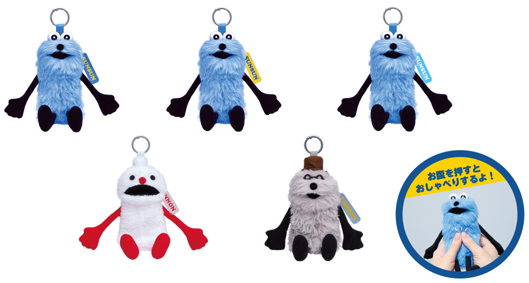 スンスン、ノンノン、ゾンゾンのお腹を押すとあいづちを打ってくれる、一緒に過ごして楽しいぬいぐるみです!