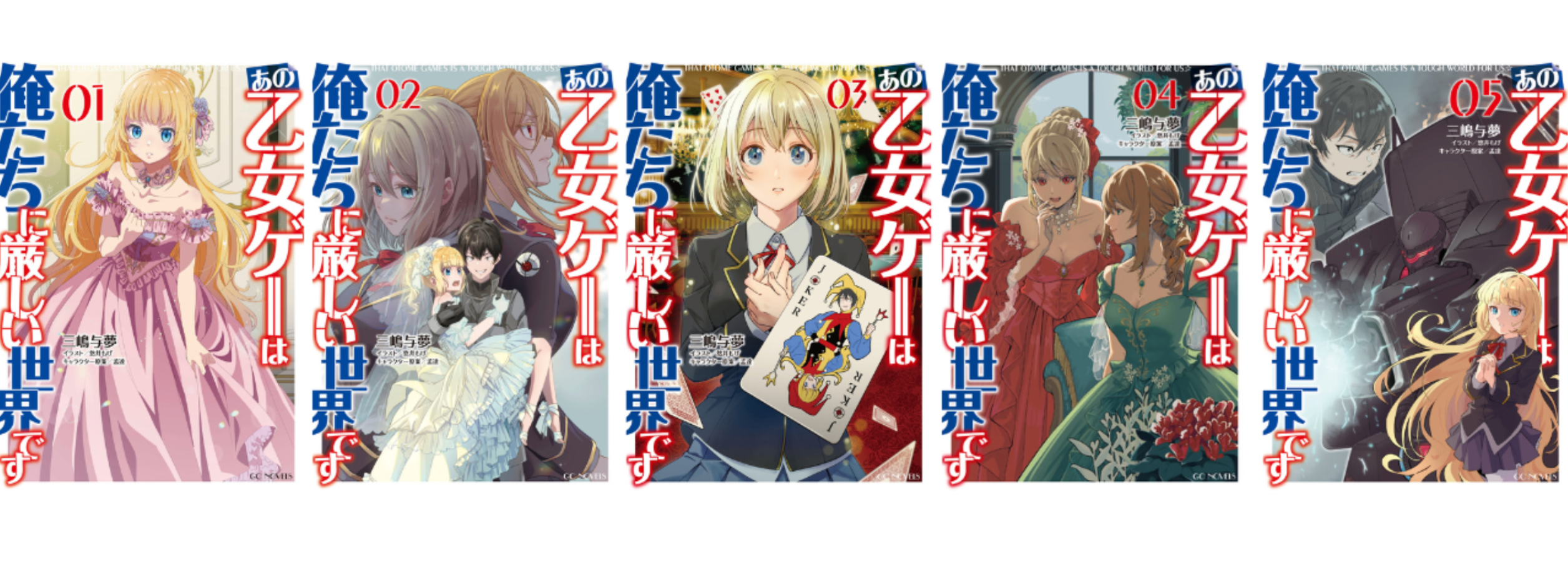 GCノベルズ『あの乙女ゲーは俺たちに厳しい世界です』小説:三嶋与夢/イラスト:悠井もげ/キャラクター原案:孟達