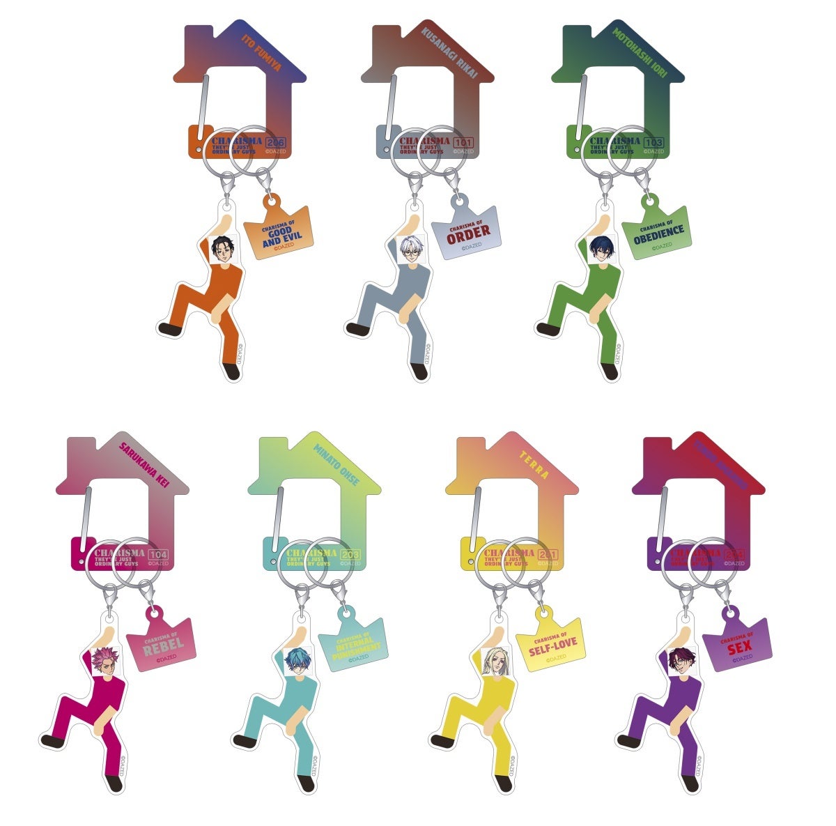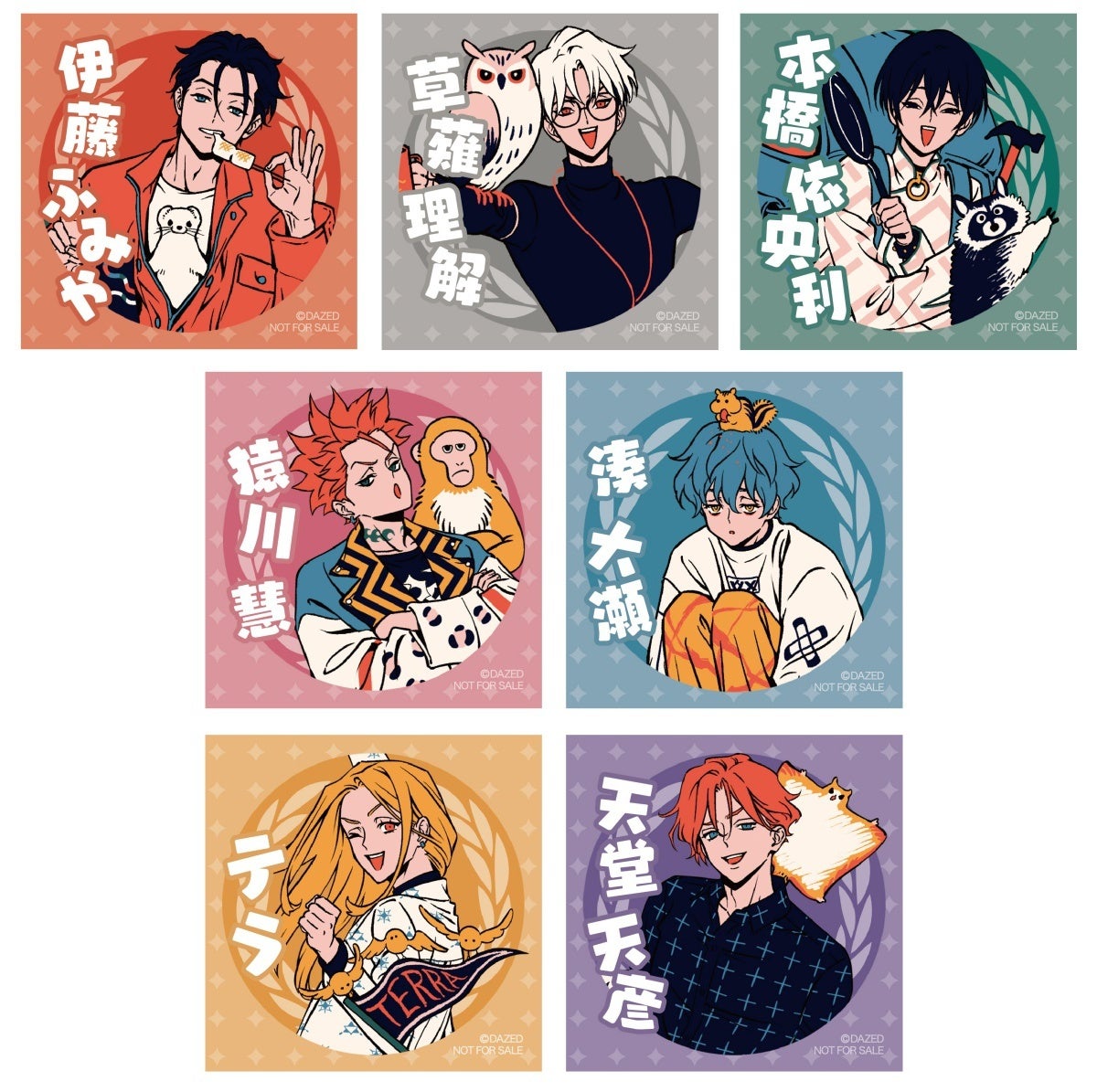 また、カリスマたちのイラストを使用した、「アクリルカラビナチャーム」や「クリアポスター」、「シェアハウスアイシングビスケット」などが登場! さらに対象商品をご購入いただいた方に、特典「イラストシール(全7種)」を1枚プレゼントいたします。商品や特典は開催期間や場所によって異なりますので、チェックしてみてください!