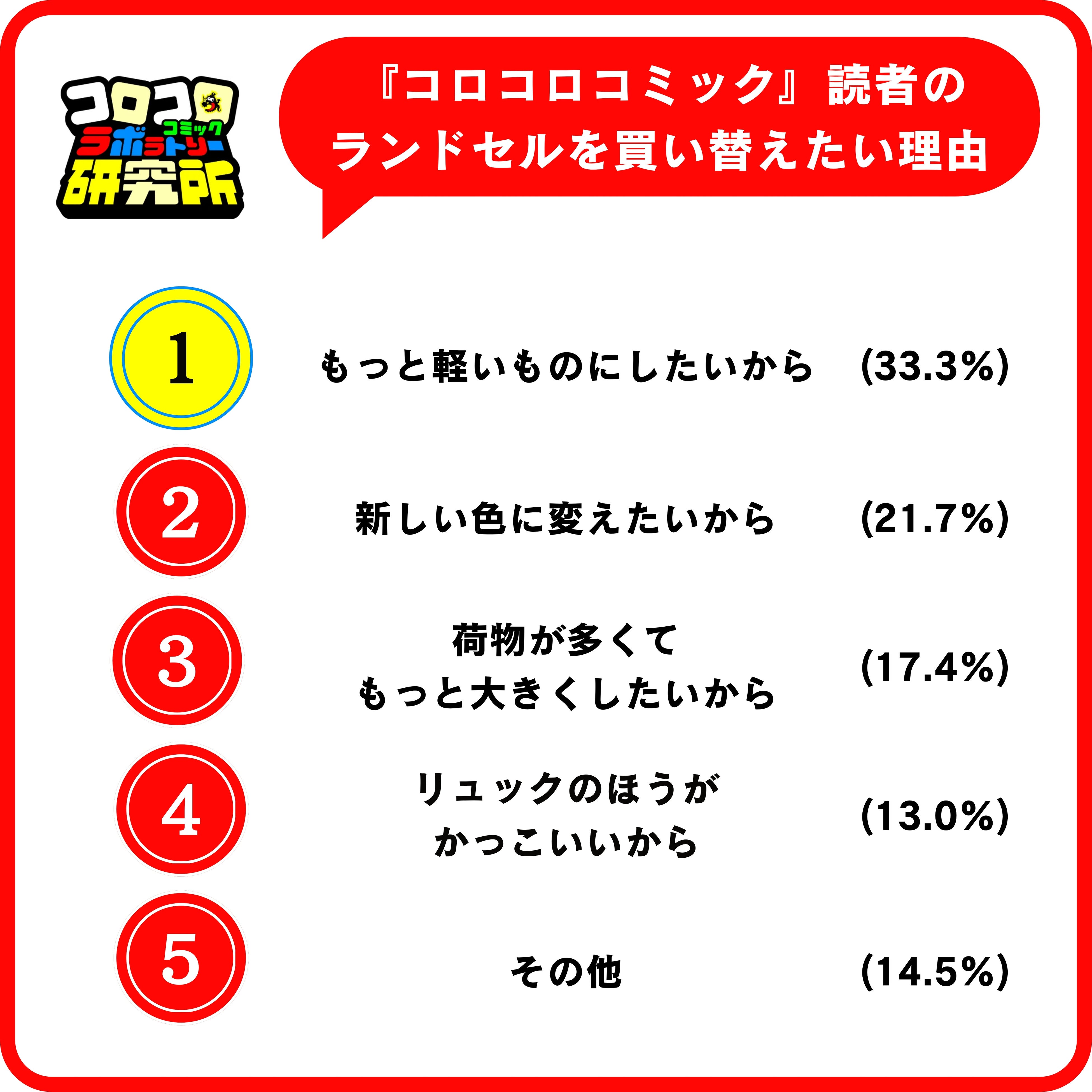 『コロコロコミック』では今回、小学生1年生から6年生までの『コロコロコミック』読者725人を対象に「ランドセル」「文房具」に関するアンケート調査を実施。ランドセルに関しては買い替え意向や体感的な重さの有無、文房具に関しては選び基準・流行のアイテムなどについて調査した結果を、『コロコロコミック研究所』所長・小林浩一の分析とともに紹介します。
