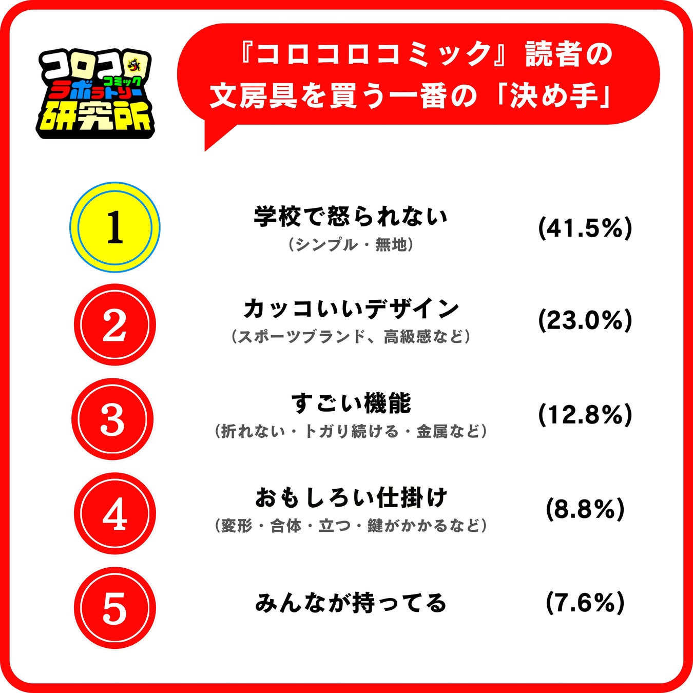 株式会社小学館は、男子小学生向けマンガ雑誌『月刊コロコロコミック』(以下『コロコロコミック』)で1977年の創刊以来続けている読者アンケートのデータをもとに、男子小学生のリアルを定期レポートおよび分析する新プロジェクト『コロコロコミック研究所』を発足しました。本プロジェクトにより、読者である男子小学生を巻き込みながら、コロコロ流化学反応を引き起こす様々な楽しく新しい企画を提案・実施して参ります。