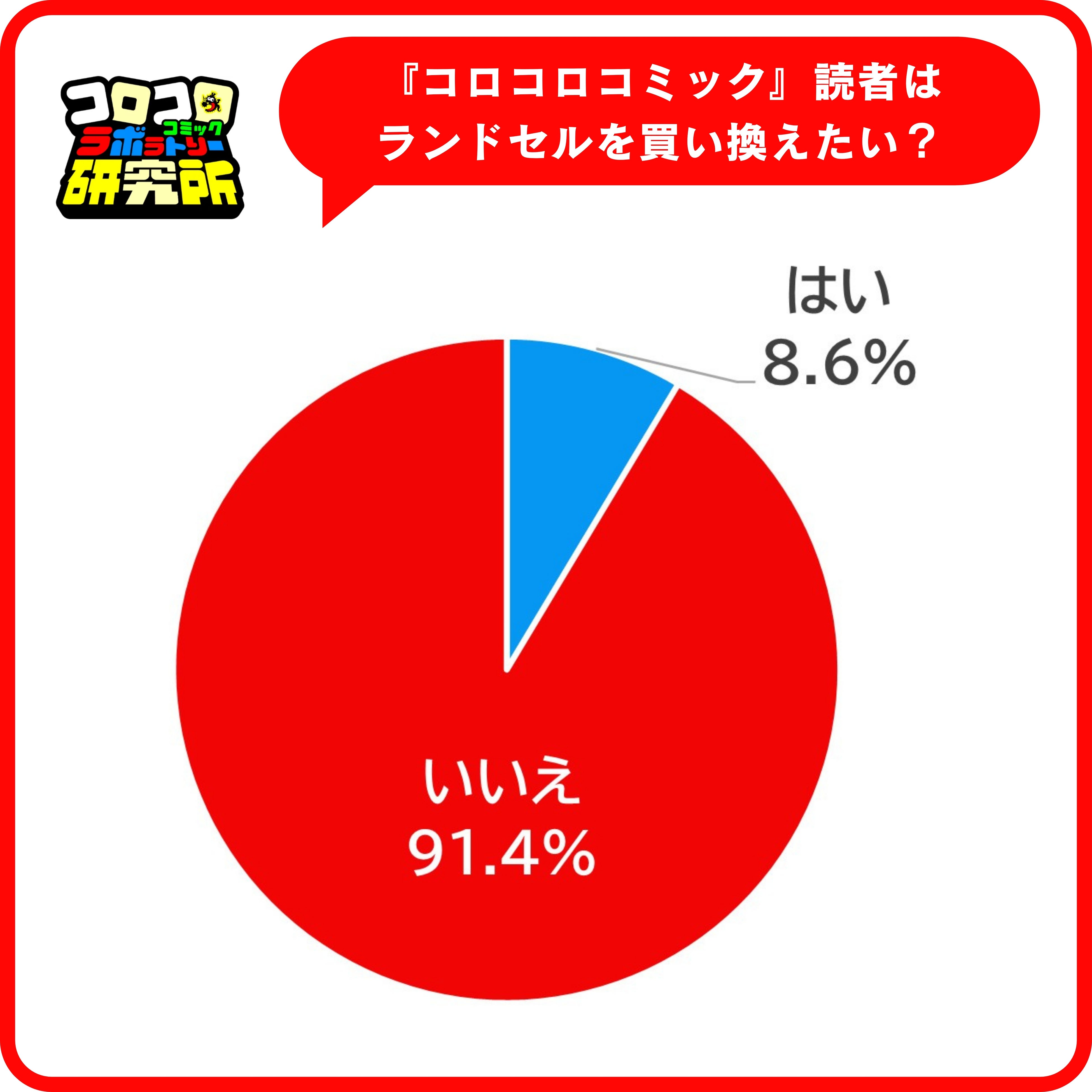 次に「ランドセル」と回答した人を対象に「ランドセルを買い変えたいと思う?」と尋ねたところ、「いいえ」(91.4%)が大多数を占めた一方、8.6%が「はい」と回答しており、ランドセルを買い替えたいと考えている小学生も一定数いることがわかりました。