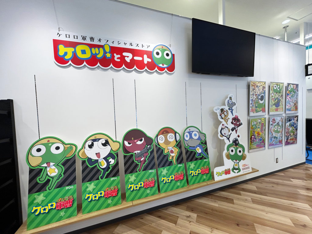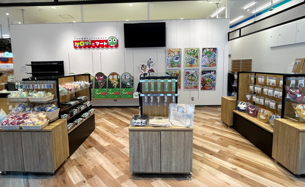 さらにイベントエリアではオープンを記念して、アニメ『ケロロ軍曹』のオフィシャルストア「ケロッ!とマート」を、4月24日(金)から6月14日(日)まで期間限定でオープンいたします。『ケロロ軍曹』関連商品を多数取りそろえたグッズコーナーとして展開するほか、ケロロ小隊5人のパネル展示など、ファン必見の内容をお楽しみいただけます。