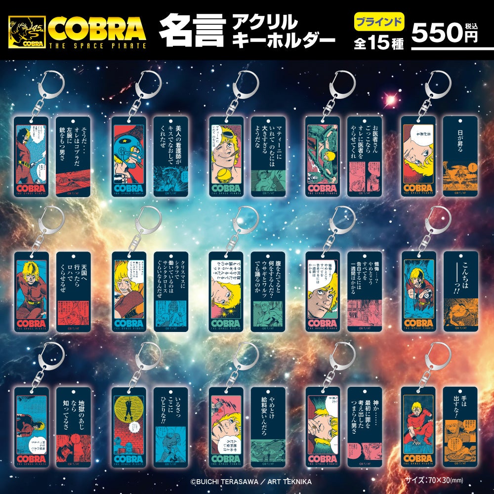 『COBRA』の魅力といえば、数々の名台詞!そんな名言集の中からピックアップした全15種の名言アクリルキーホルダーが登場!