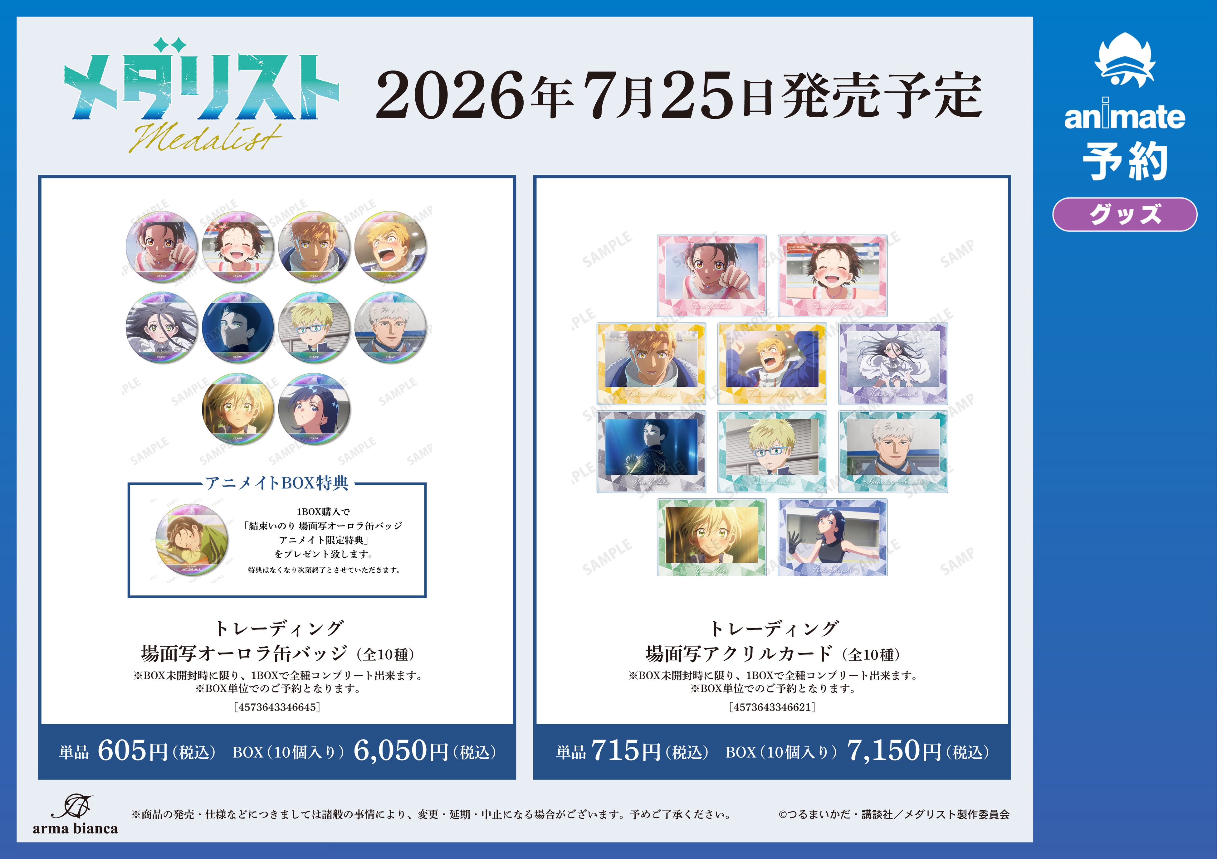 漫画・アニメのオリジナルグッズを販売する株式会社アルマビアンカ(本社:東京都中野区、代表取締役:坂井智成)は、この度、TVアニメ「メダリスト」アニメイトフェアを実施いたします。