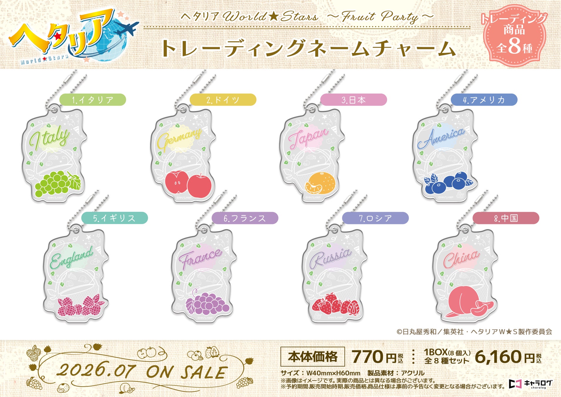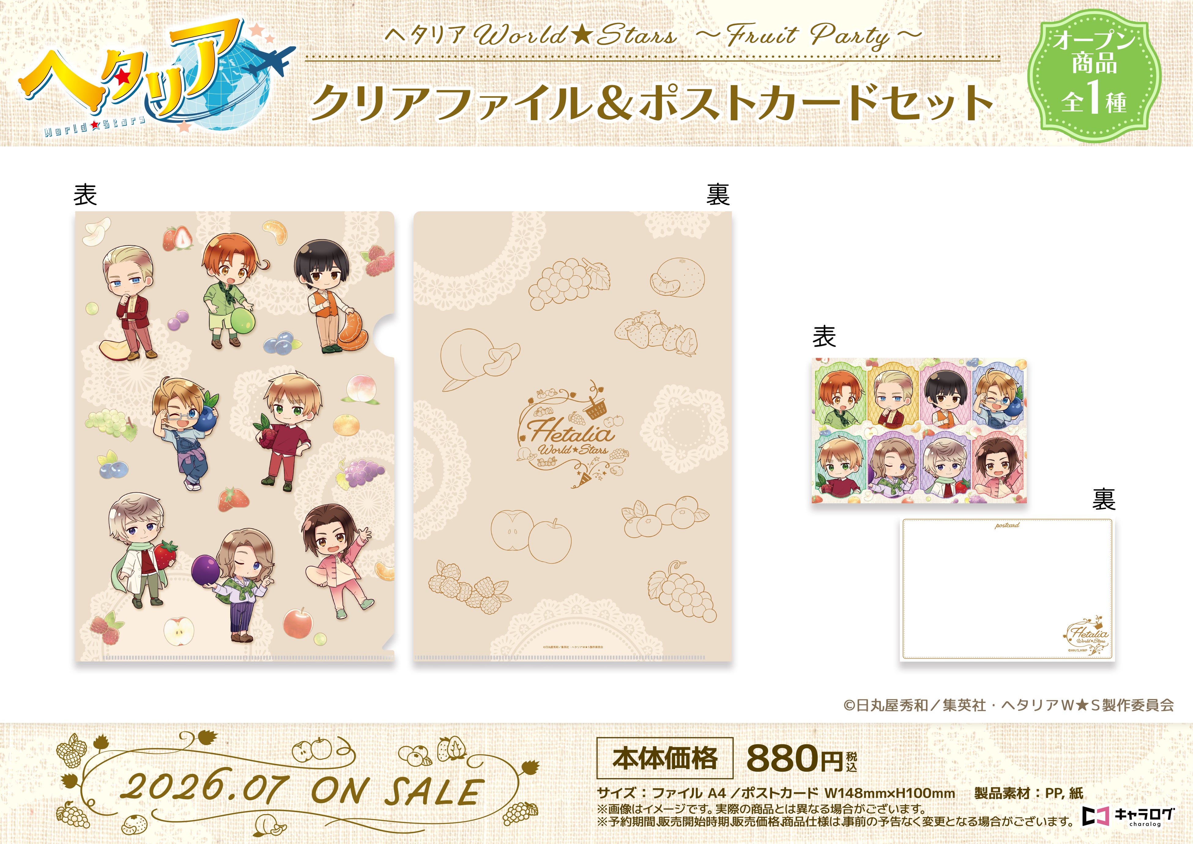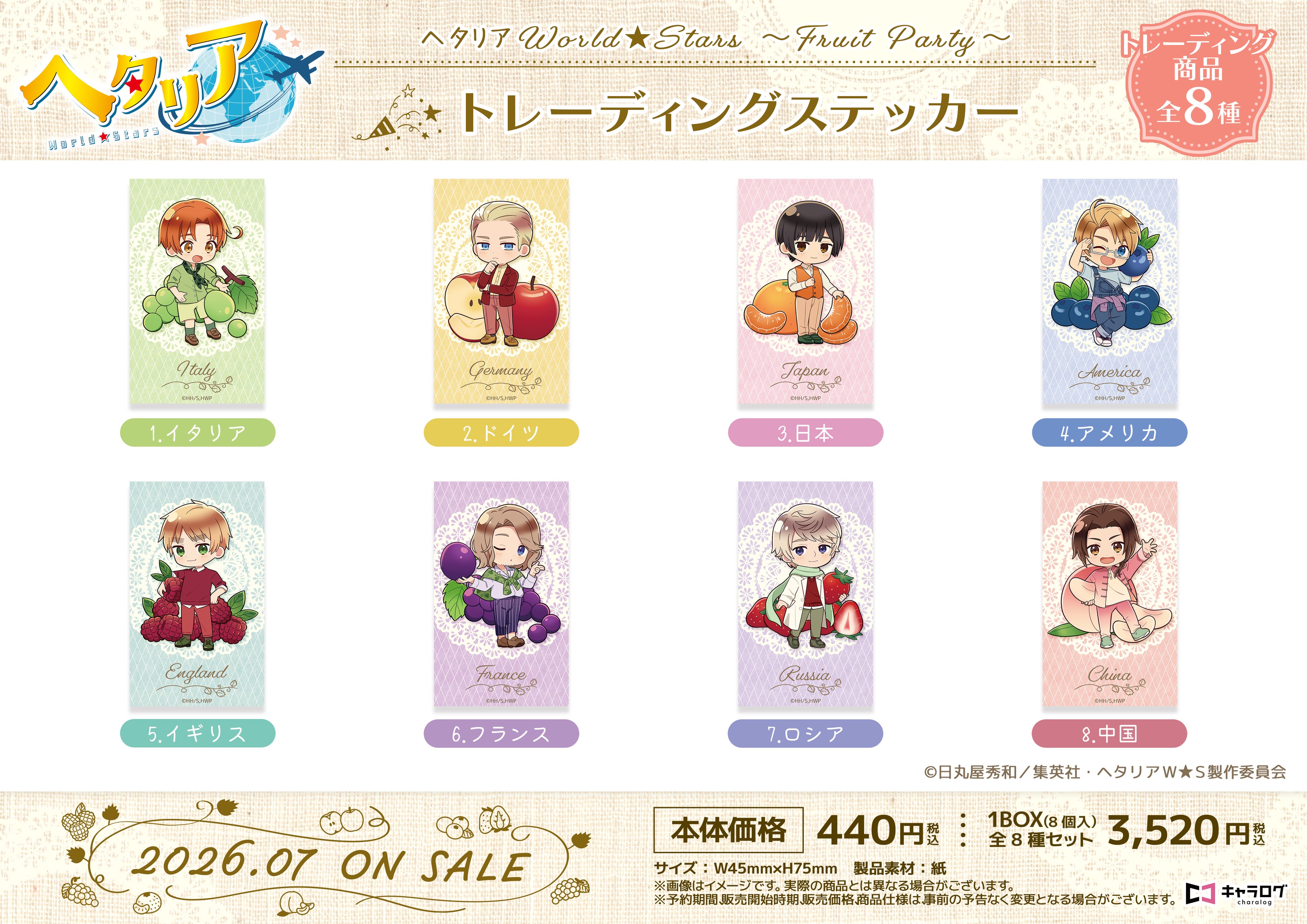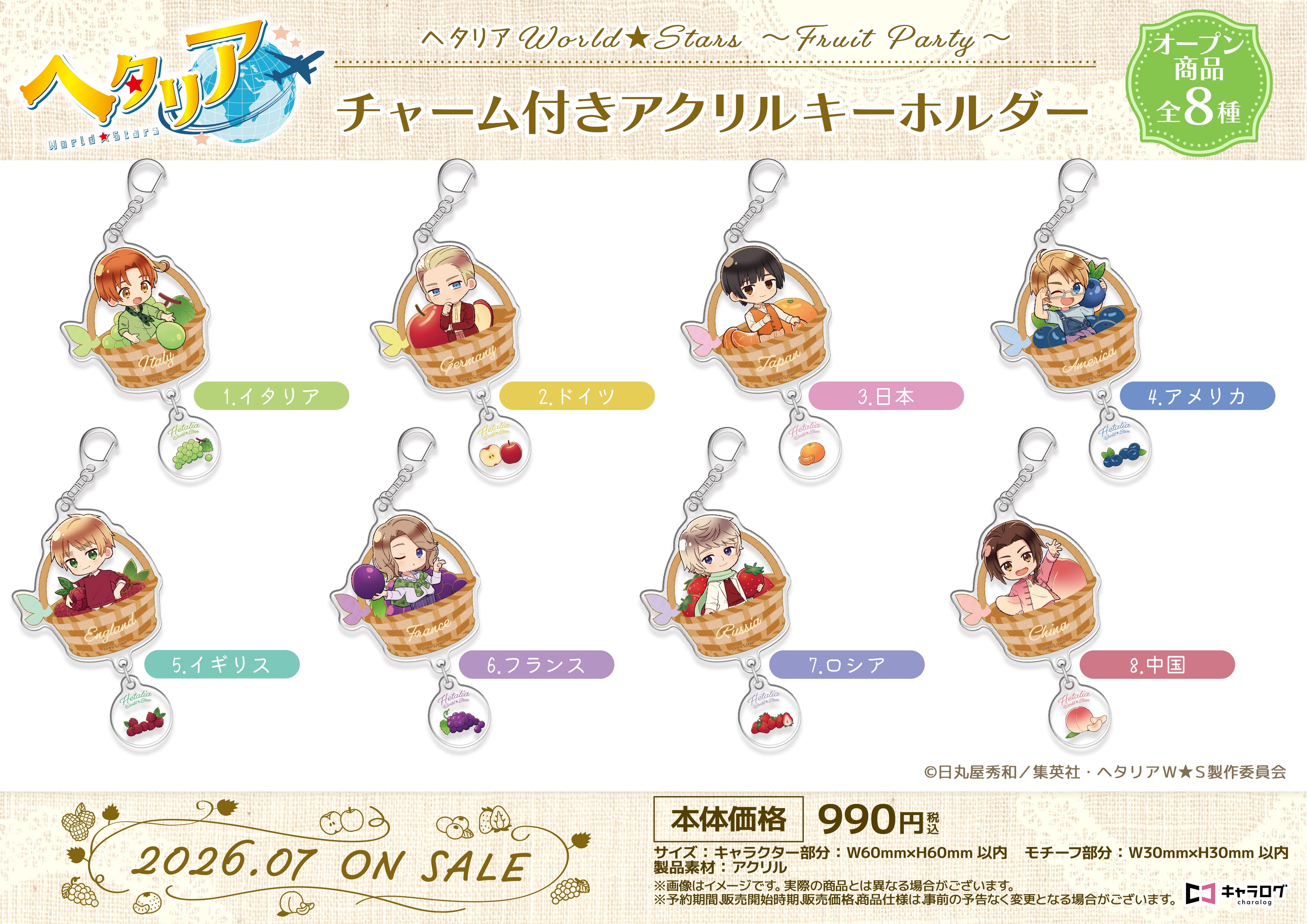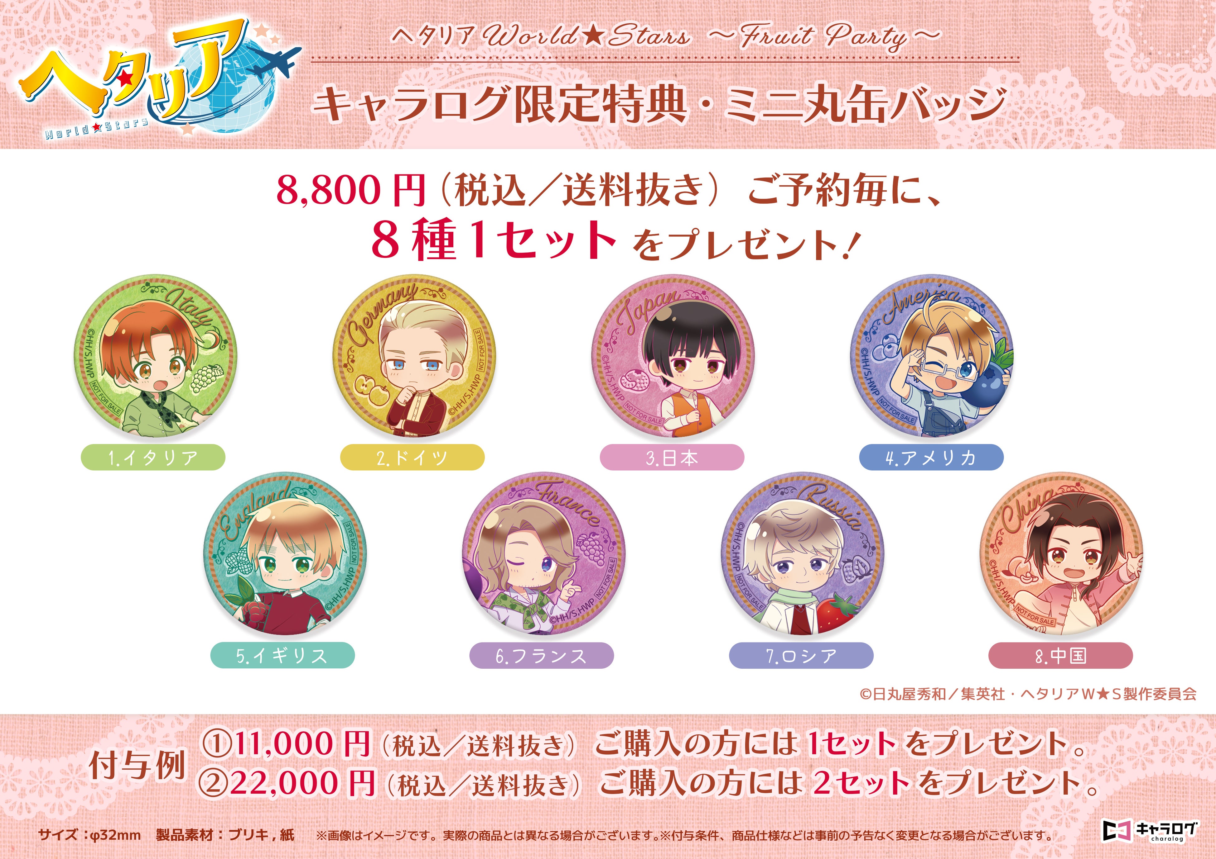 キャラログ他、全国のアニメショップやECサイトにて予約受付中! キャラログ初のオリジナル衣装「ヘタリア World★Stars ~Fruit Party~」をどうぞお見逃しなく!
