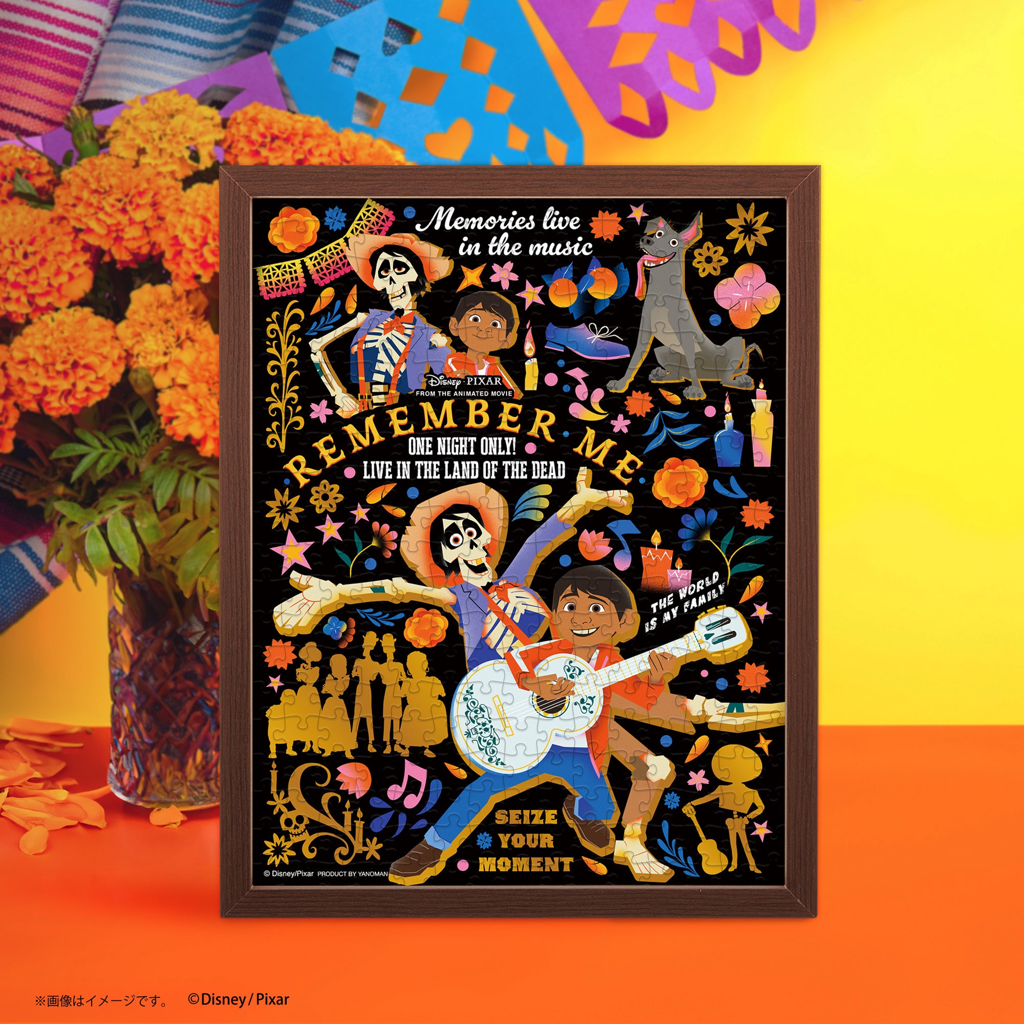 完成したパズルは、プチ2専用インテリアスタンドフレーム(別売)を使ってそのままデスクや棚に飾れます。モアナと伝説の海、シュガー・ラッシュ、モンスターズ・インク、リメンバー・ミー、エイリアン、ニックの6種を揃えて、あなただけの世界をお楽しみください。