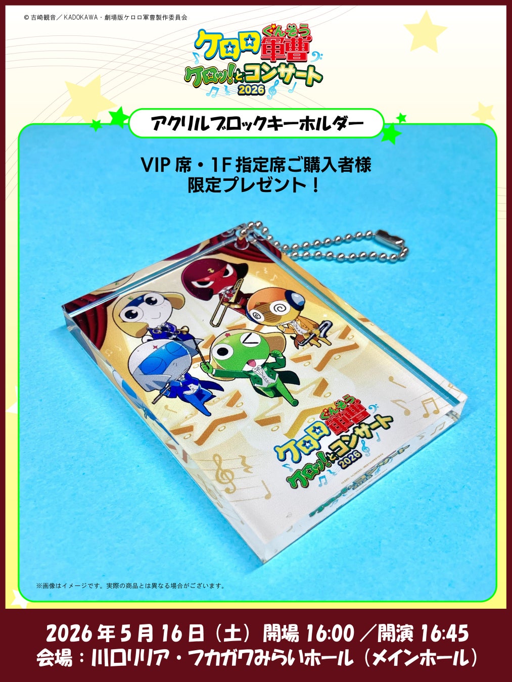 VIP席・1F指定席ご購入者様には、もれなく「アクリルブロックキーホルダー」をプレゼント!