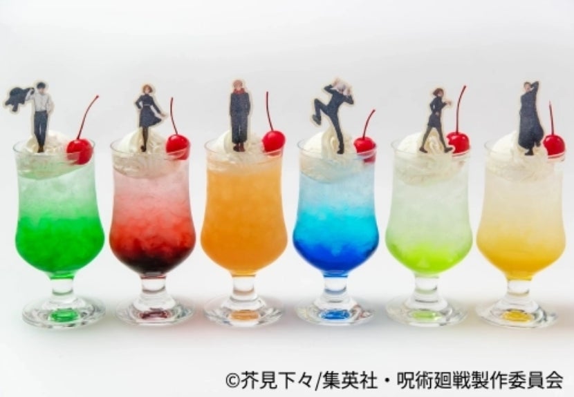 アニメーション呪術廻戦展 「懐玉・玉折」「渋谷事変」の阪急うめだ本店での開催を記念して、「丸福珈琲店」にコラボ限定メニューが登場!コラボ限定メニューを1つご注文につきオリジナルステッカー(全6種)をランダムで1枚プレゼント!