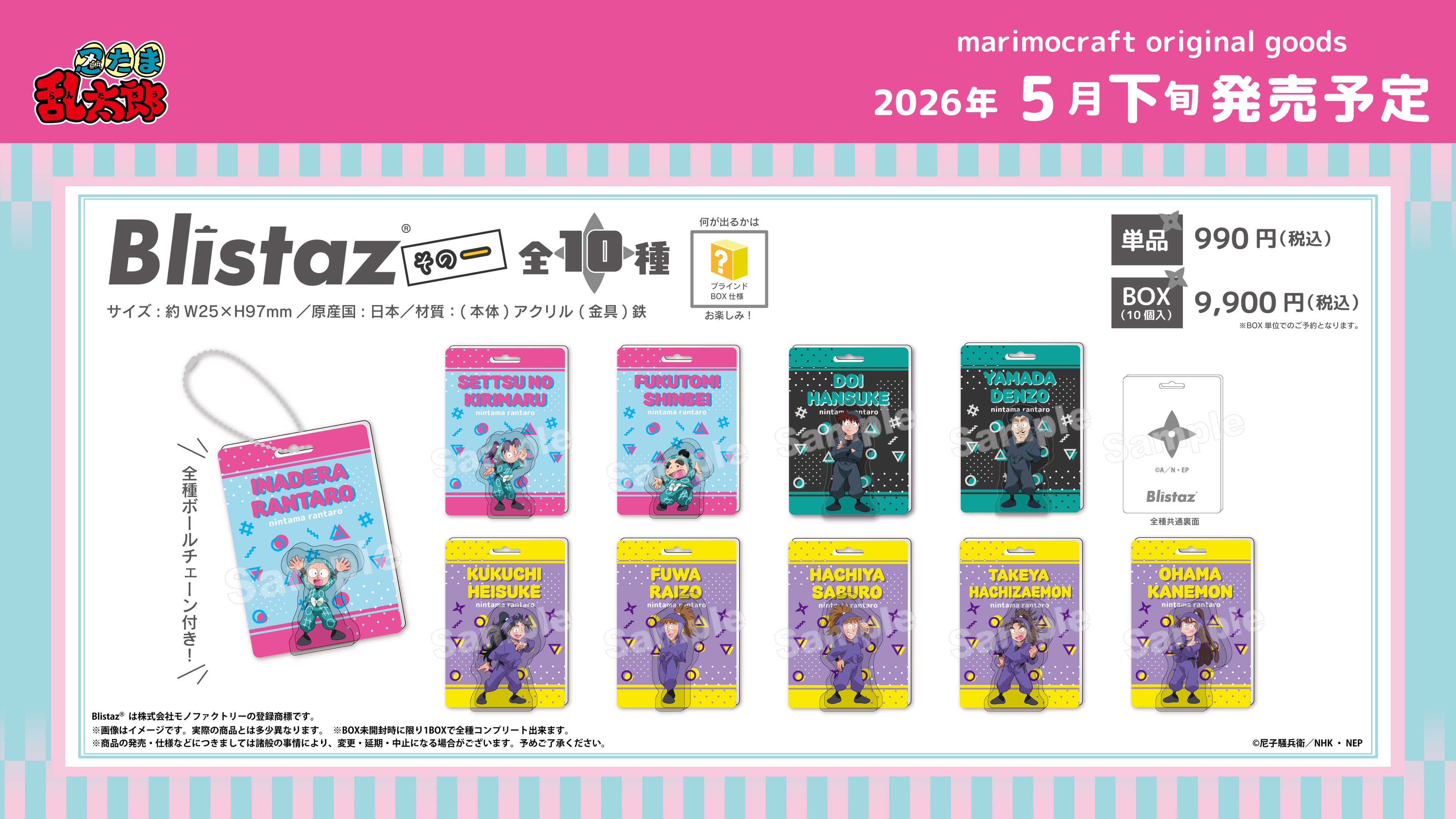 商品には、フィギュアのようなブリスターパック仕様で話題の『Blistaz®(ブリスタズ)第1弾(全10種・ランダム商品)』、各キャラクターの目元と『目ヂカラアクリルキーホルダー 第2弾』がラインナップ。キャラクターの魅力を存分に詰め込んだアイテムです。