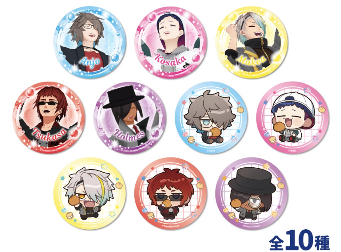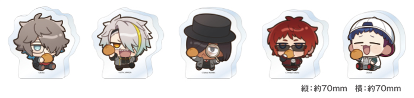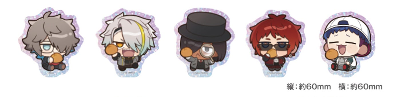 新グッズでは、ミニキャライラストを使用したアクリルマスコット・グリッターステッカー・缶バッジ(カプセルトイ販売)の3アイテムが新たに登場いたしました。