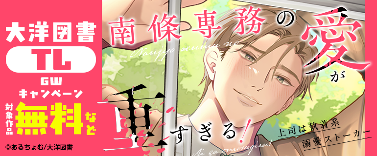 大洋図書【TL】GWキャンペーンが、本日から「コミックシーモア様」にて開催中!キャンペーン期間中は50タイトル以上の作品が”無料&値引き”で読めるチャンス!さらに、『南條専務の愛が重すぎる!~上司は執着系溺愛ストーカー~』合冊版も配信開始!この機会に、ぜひご覧ください♪