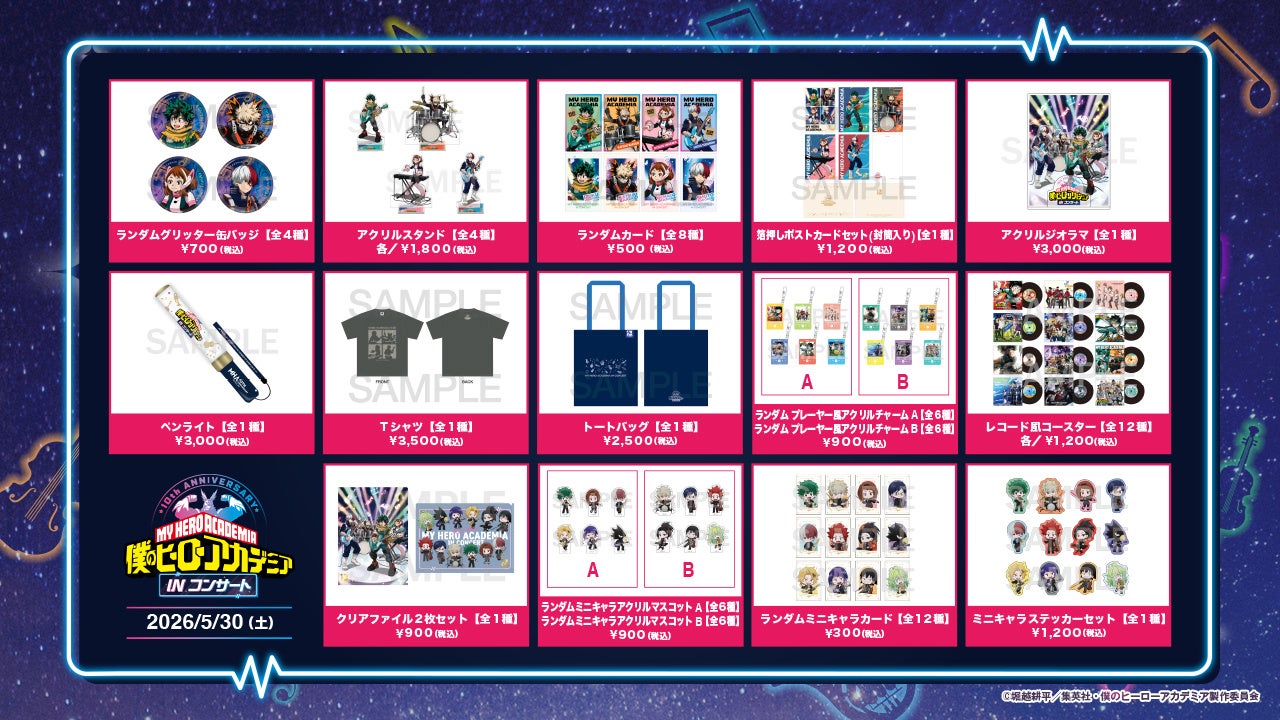2026年5月30日(土)横浜公演、2026年8月8日(土)、8月9日(日)大阪公演で販売予定の公演公式グッズの全ラインナップを公開致しました。本公演の描き下ろしビジュアルを使用した豪華ラインナップの他、特別にデザインされたミニキャラグッズも販売いたします。