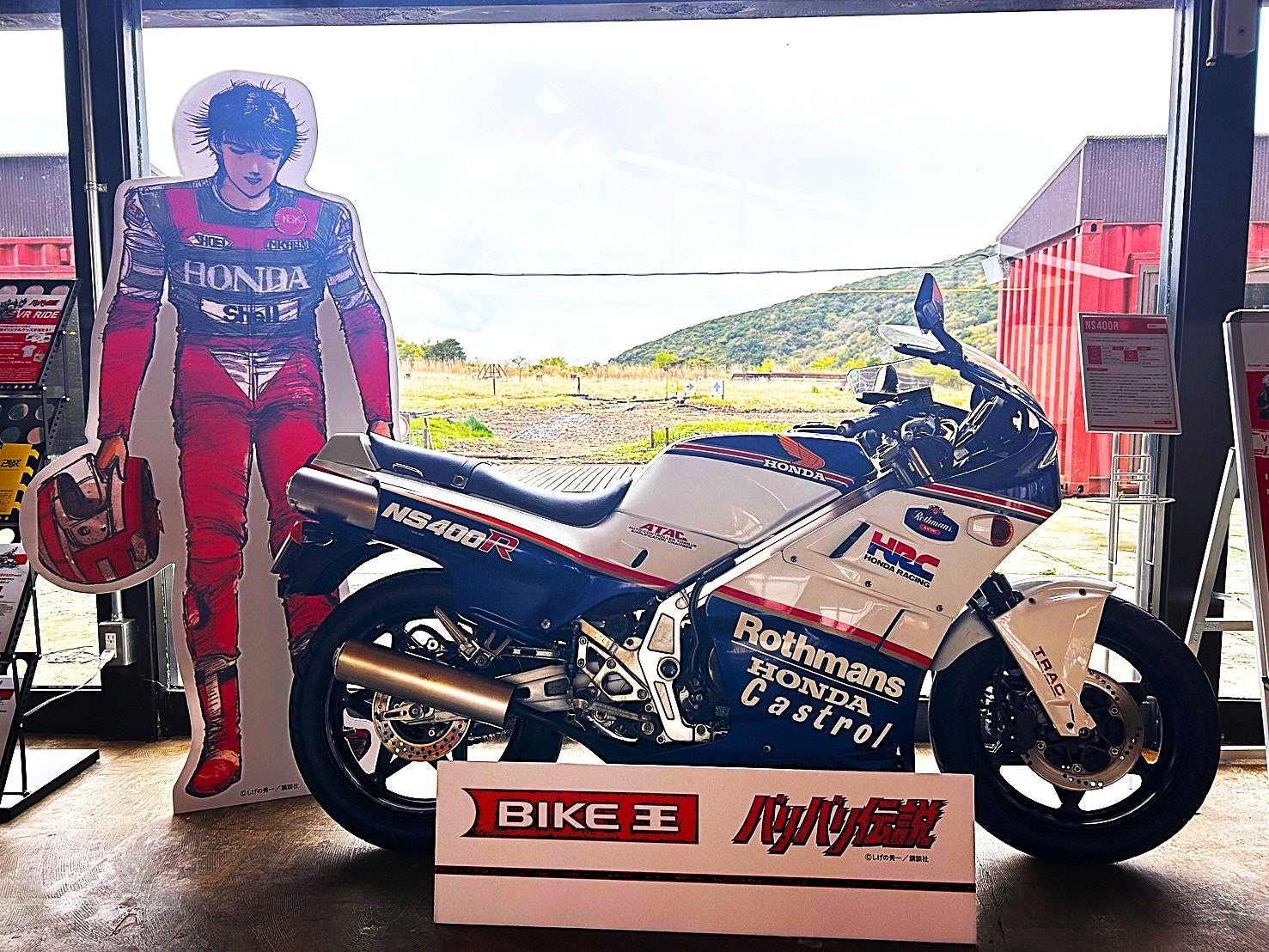 作品の中で、主人公の愛車として登場するNS400Rも特別展示されています。