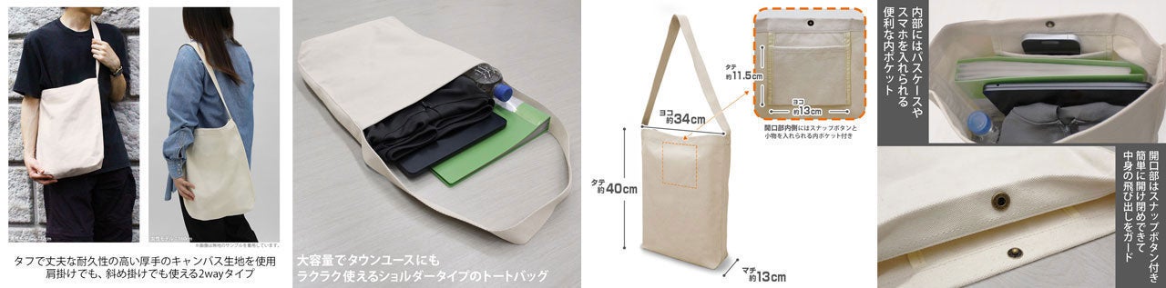 ・耐久性の高い、厚手のキャンバス生地を使用したショルダータイプのトートバッグ。