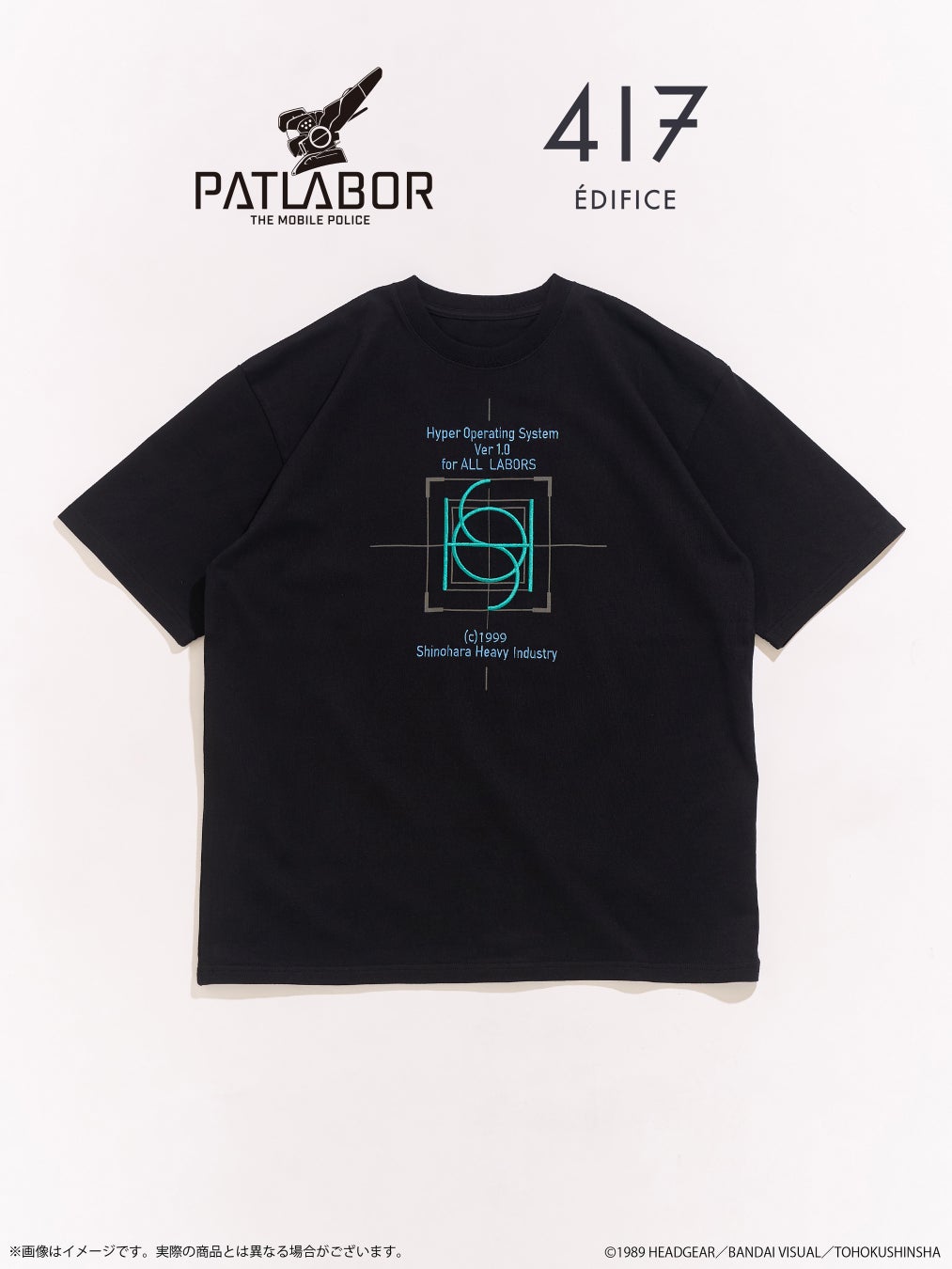 『機動警察パトレイバー 劇場版』で印象的な「HOS」の起動画面をデザインしたTシャツが登場。文字と「HOS」のアイコン部分を刺繍、ターゲット部分をプリントにすることで奥行き感のある仕上がりに。通常状態と暴走状態の2パターンのカラーバリエーションとなっています。