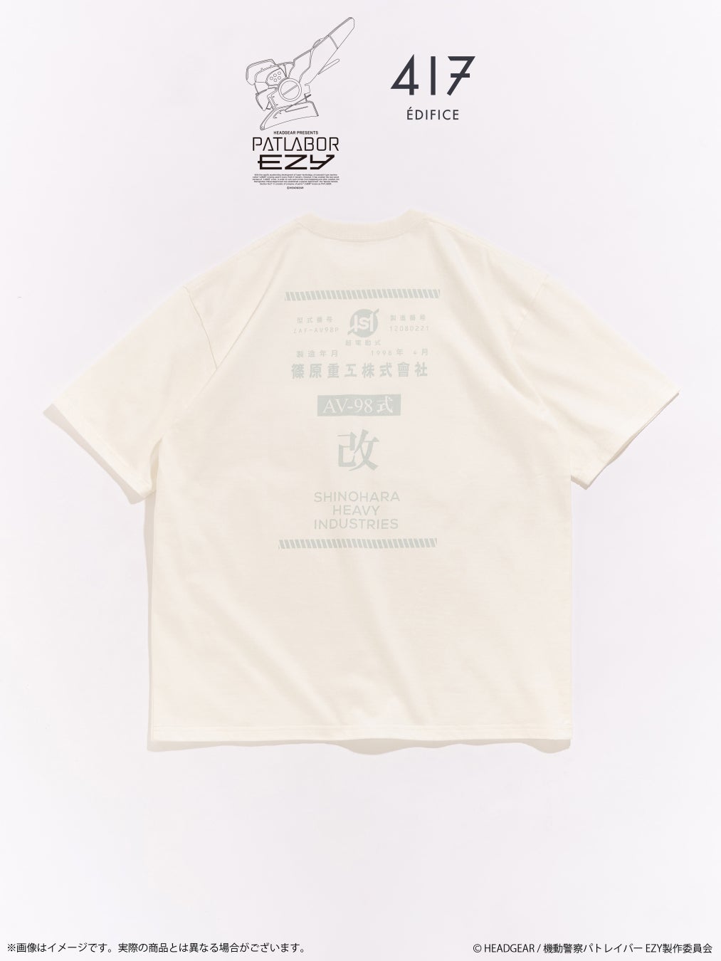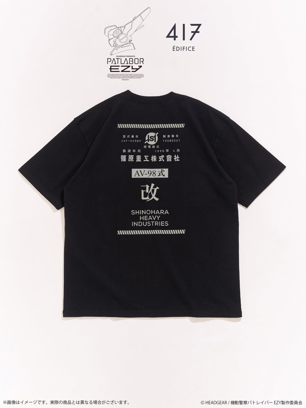 『機動警察パトレイバー EZY』の主役機「AV-98Plus イングラム 1号機」の機体に取り付けられた製造番号のプレートを主軸に、機体名などを組み合わせたデザインを背中にプリント。胸元にはリフレクター印刷でさりげなく輝くタイトルロゴをクールにあしらった、企業感のあるTシャツです。