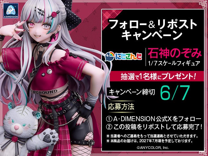 株式会社A・DIMENSION(Aディメンション)(本社:東京都台東区、代表取締役社長:上村篤)は、『にじさんじ 石神のぞみ 1/7スケールフィギュア』の発売を決定し、予約受付を2026年4月27日(月)10:00より開始いたします。予約締切は、2026年6月7日(日)23:59となります。