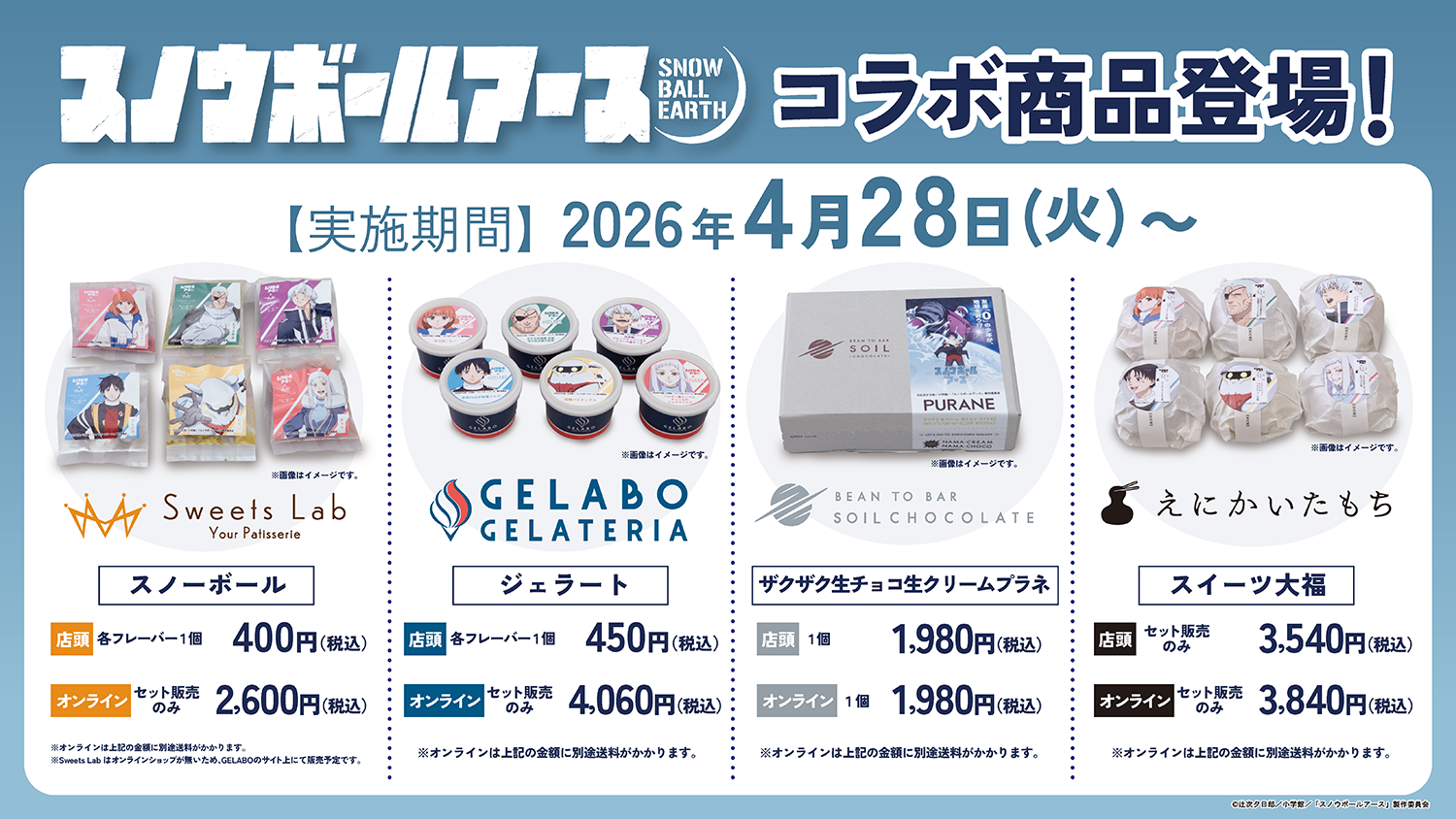 札幌市を拠点に様々なスイーツ事業を展開している「株式会社エンクル」(本社:[北海道札幌市]、代表取締役:[笹川円])は、2026年4月3日より毎週金曜日23:30放送開始のTVアニメ「スノウボールアース」とのコラボ商品を期間限定で販売開始いたします。